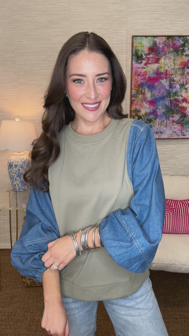 The Denim Sleeves Top in Sage
