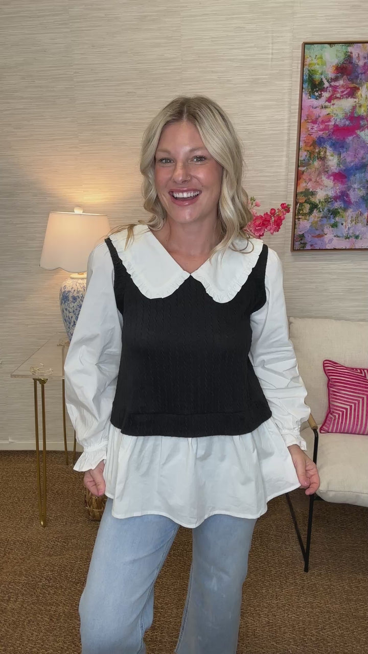 The Poplin Prep Top in Black/AS