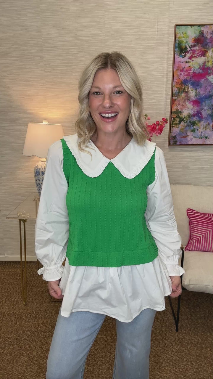 The Poplin Prep Top in Green/AS