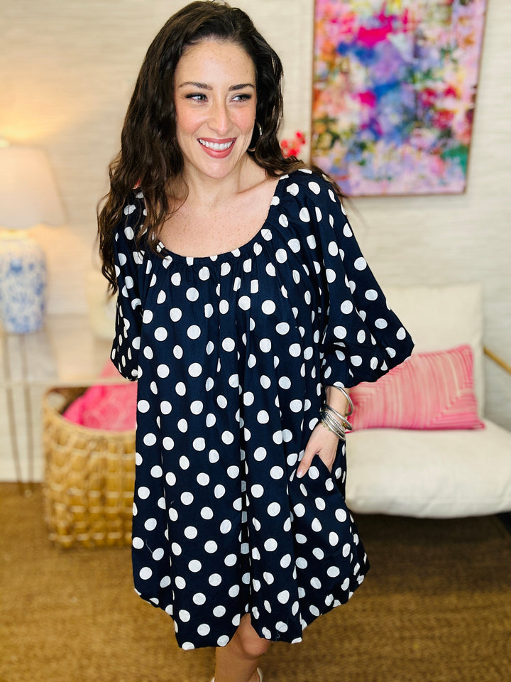 The Polkadot Puff Dress in Navy