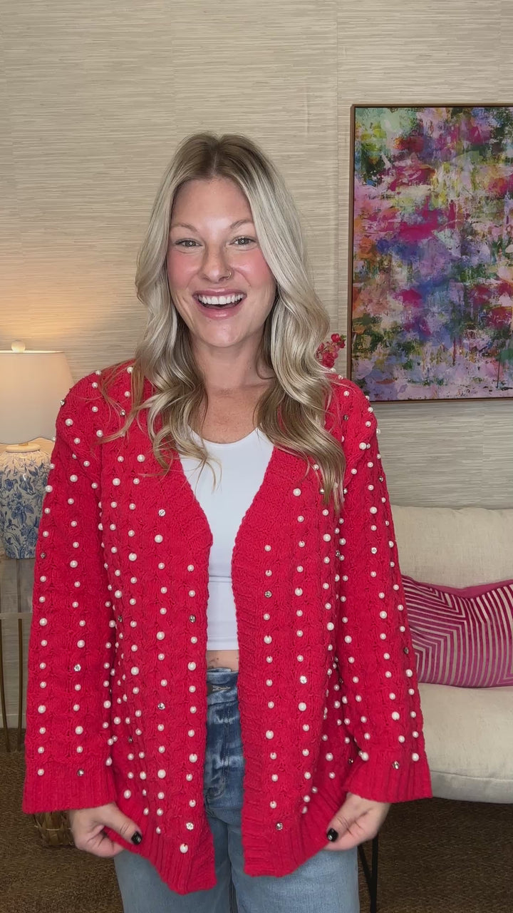 The Pearled Cardigan in Cherry