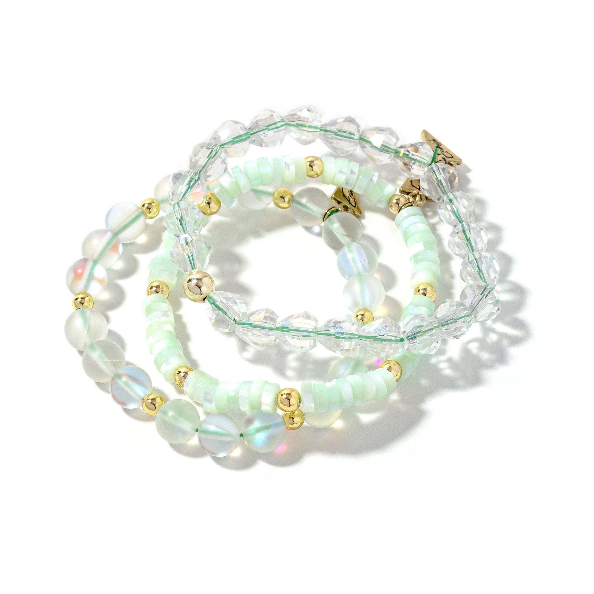 - Add a splash of charm with the Baker Starter Stack Green! Featuring a soft green hue and stunning sparkling beads, this bracelet stack brings playful elegance to any outfit.