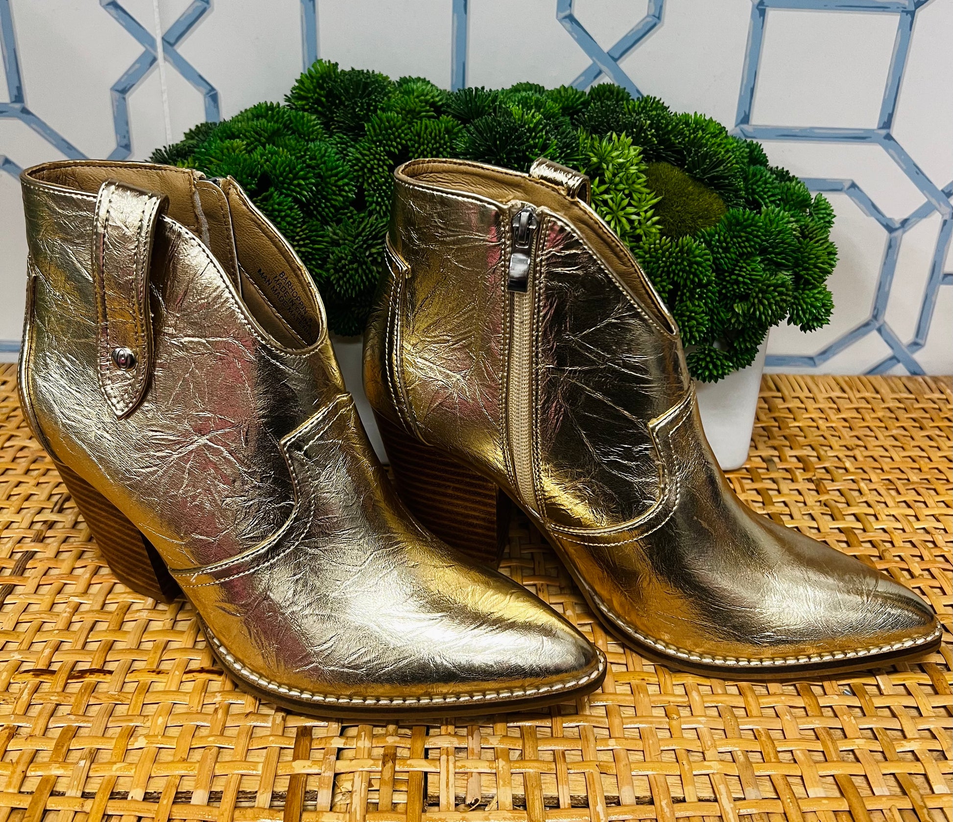 Step out in style with the Bar Hoppin Boots in Gold Wrinkle! These edgy booties catch the light and turn heads with their shimmering textured finish. Perfect for dancing through the night or adding a bold pop to your everyday look, they bring confident vibes wherever you go. Slip into these fun, statement-making boots and let your feet do the talking!