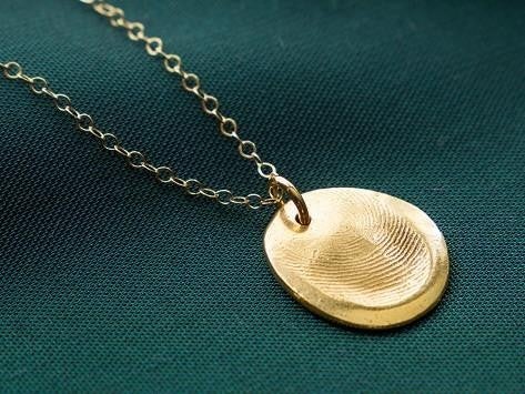 These heirloom quality treasures make great gifts that can be worn in many forms. Personalized and effortlessly charming, it will be a piece that everyone in your life will want to know about. Custom fingerprint pendant in hand-finished silver or gold with up to three initials stamped on back. 18 " sterling silver or gold filled necklace is included with completed pendant. Silver pet nose print pendant to keep your companion close forever. 18 " sterling silver necklace is included with completed pendant.