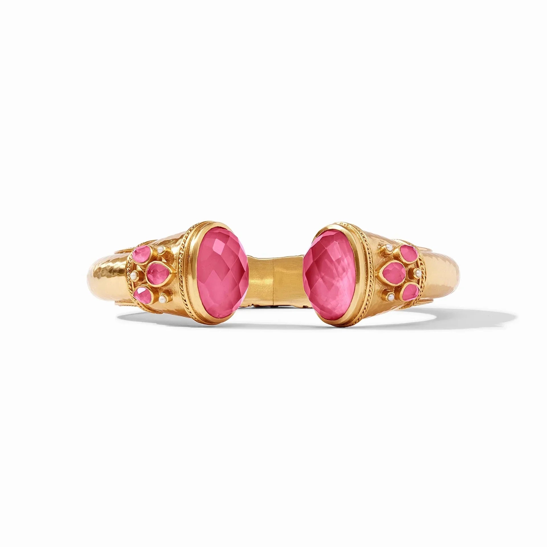 Sparkling rose-cut endcaps accented with pear shape gemstones on a luxuriously gilded cuff.