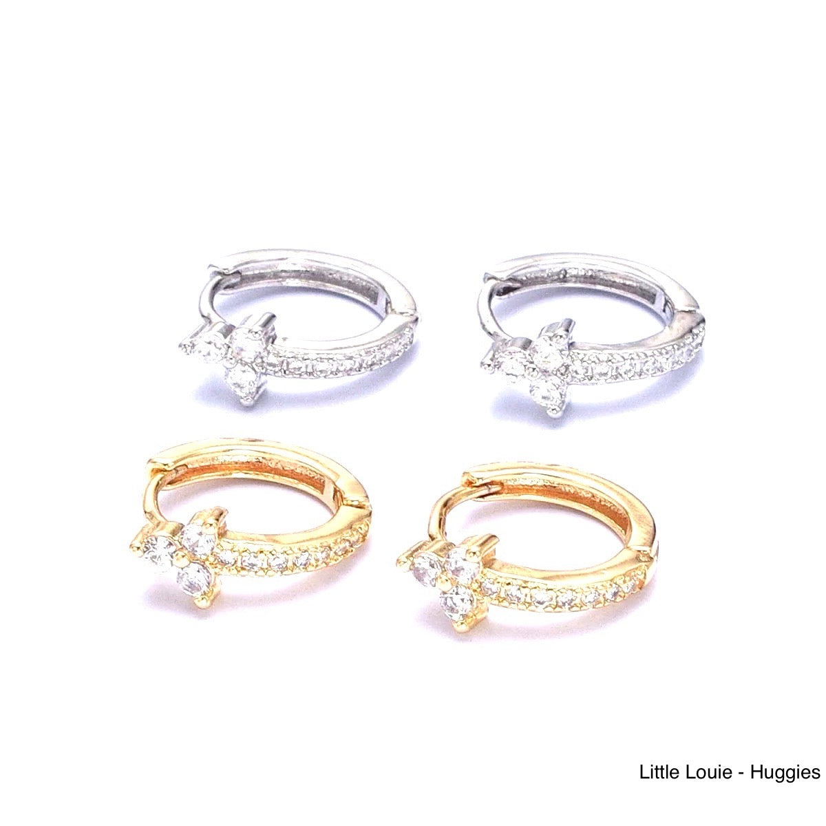 Small Pave' Huggies With Diamond Clover Accent