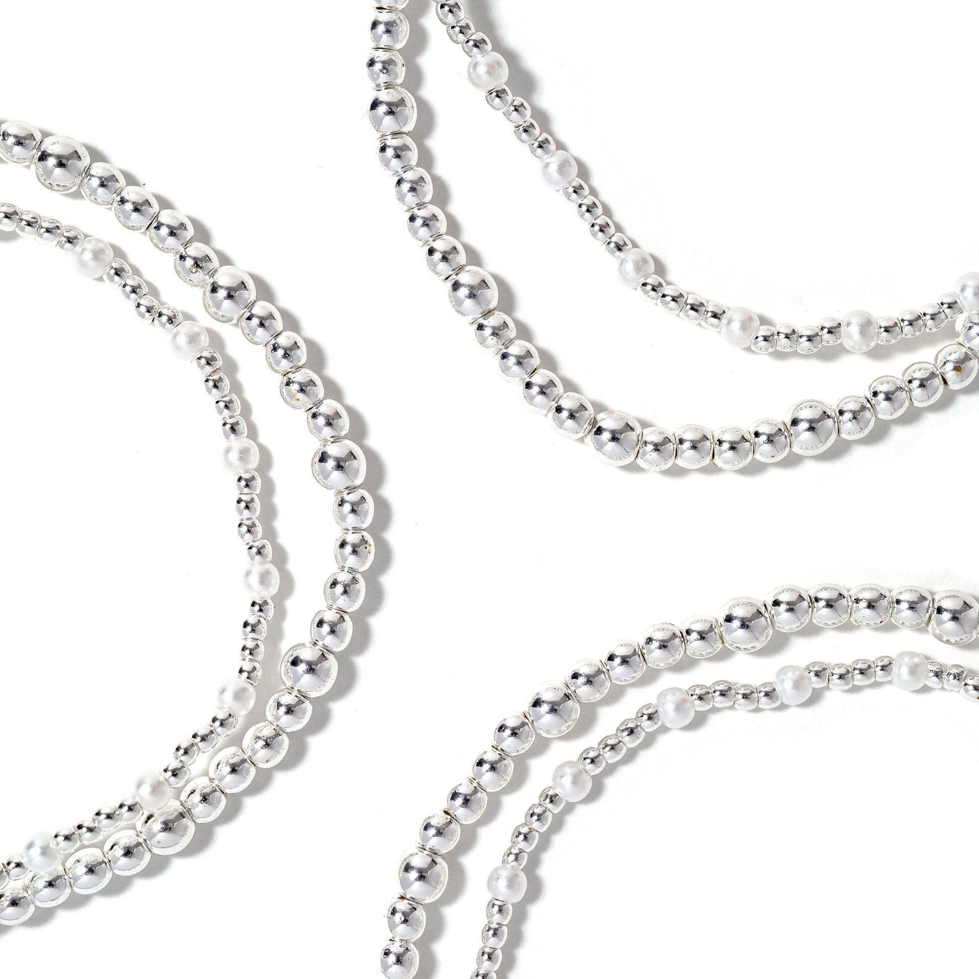- A bracelet set with dainty, gold and pearlescent beads - a classic accessory with a playful twist!