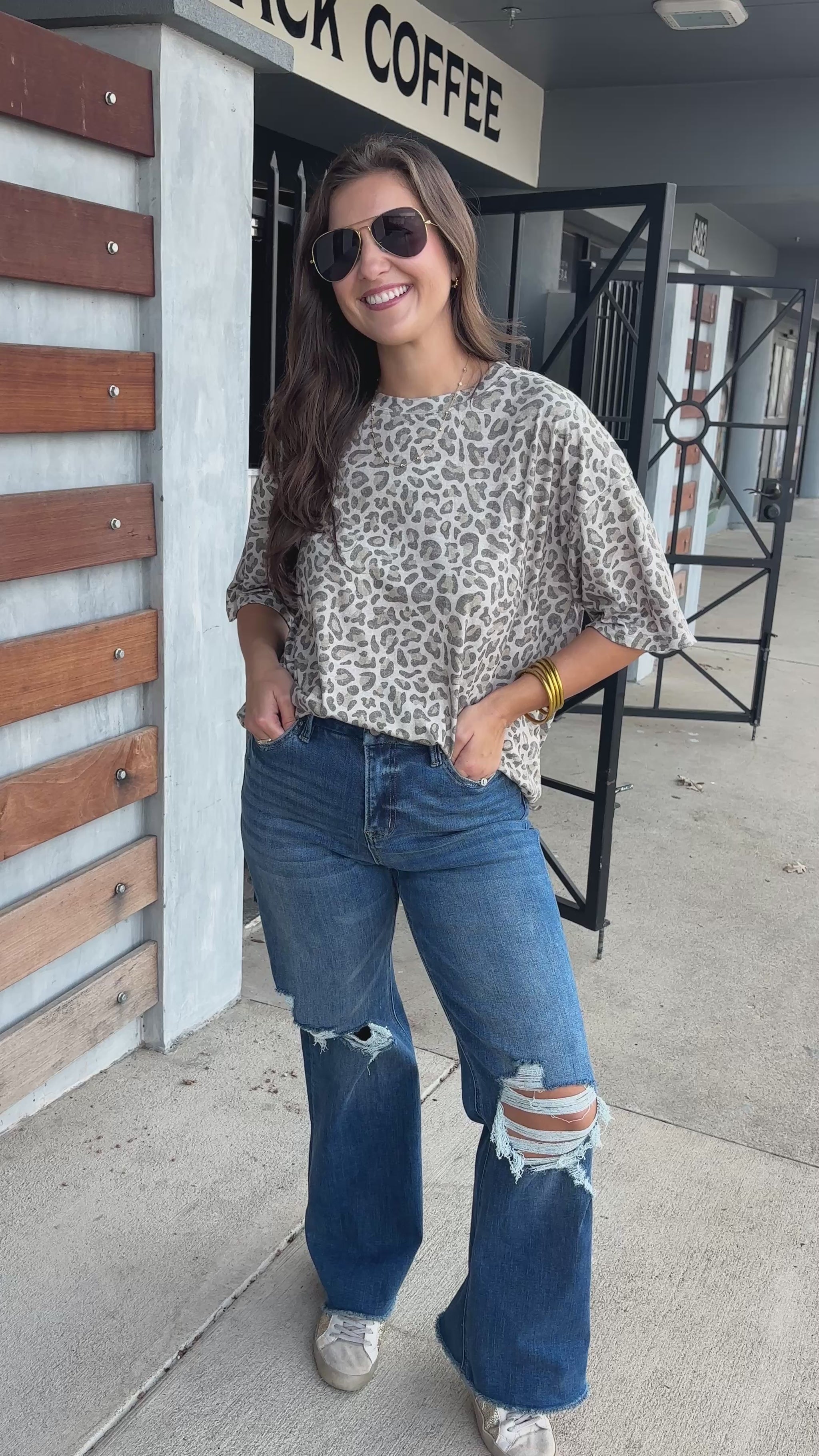 Meet the ultimate oversized tee, designed by Ashley as her definition of the perfect fit. Inspired by the classic boyfriend tee, it features long short sleeves, a high crew collar, and premium structured fabric that drapes effortlessly no matter how you style it. Dress it up or down with ease. For a relaxed fit with jeans, follow our recommended size chart. Prefer an extra-oversized look or styling with leggings? Size up one! 30% Cotton 65% Polyester 5% Spandex Size Chart: XS: 0-2 S: 4-6 M: 8-10 L: 12-14 XL: 16-18 XXL: 20 XXXL: 22 Ashley is a size 4/6, small in tops, and prefers a size small if wearing with jeans and size medium if wearing with leggings. Katie is a size 6/8, medium in tops, and prefers a size small if wearing with jeans and size large if wearing with leggings. Hannah is a size 6/8, medium in tops, and prefers a size medium if wearing with jeans.