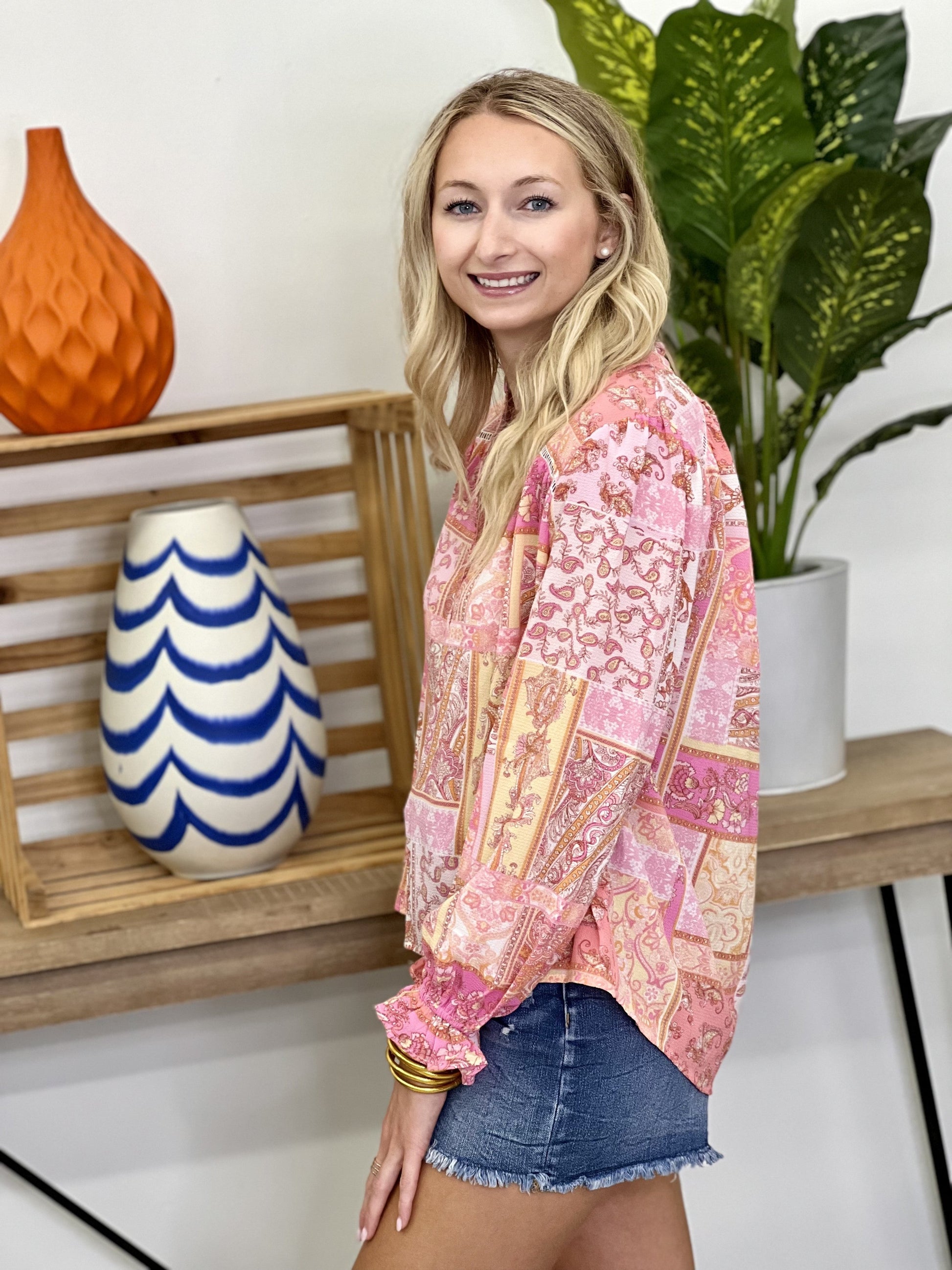 Pretty Peasant Top in Coral
