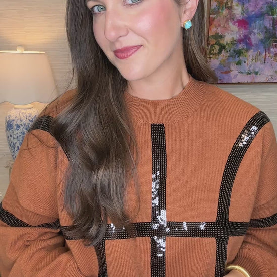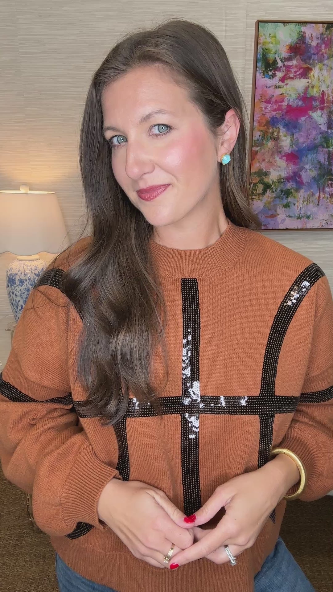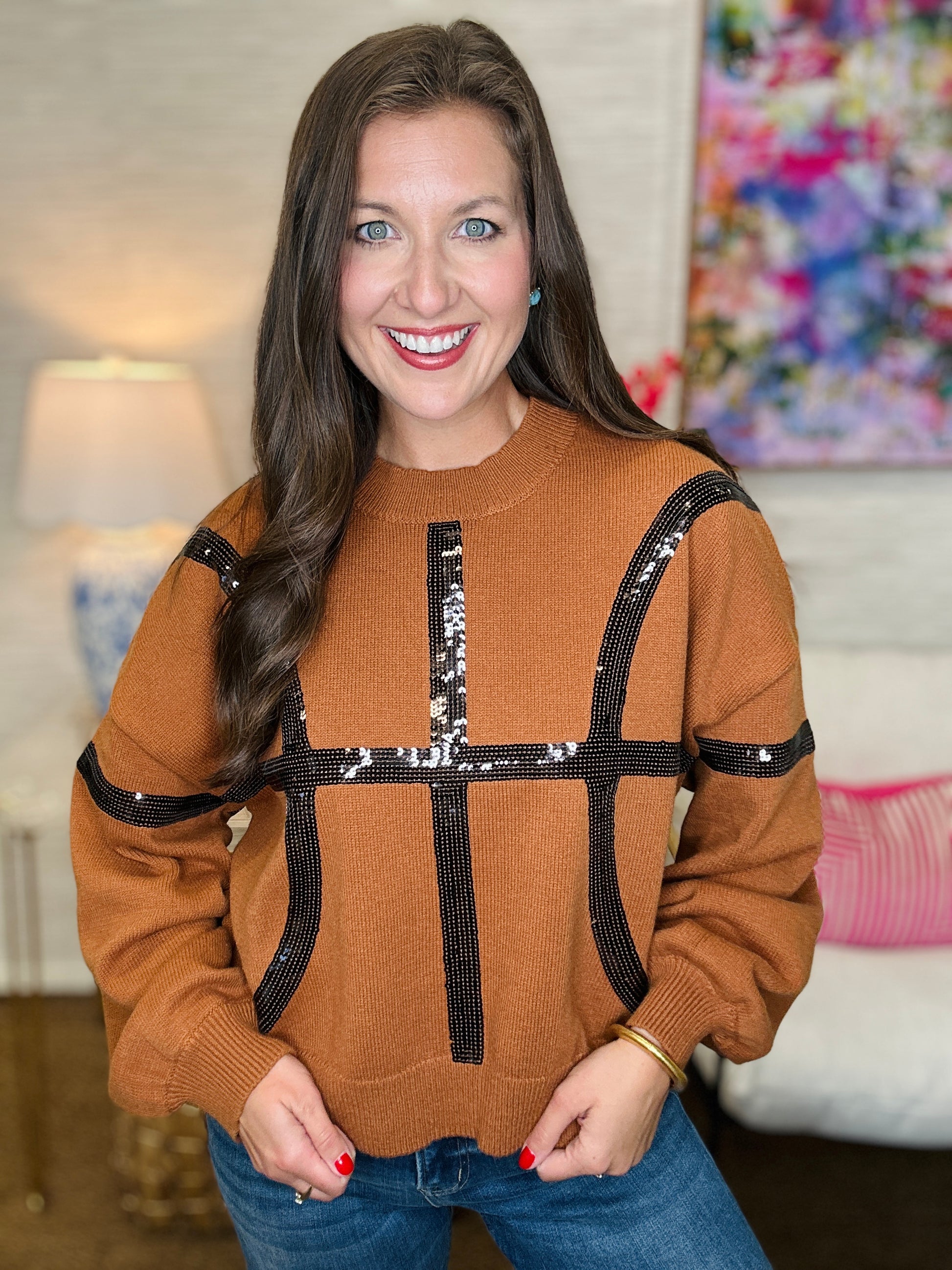 Shine bright like a diamond with the QOS Basketball Sweater—where sporty meets sparkly! This show-stopping brown knit features a dazzling black sequin basketball design that catches the light with every move. Perfect for the queen of sparkles who refuses to choose between athletic vibes and glam, this sweater proves you can absolutely have it all. Get ready to turn heads and steal the court in style.