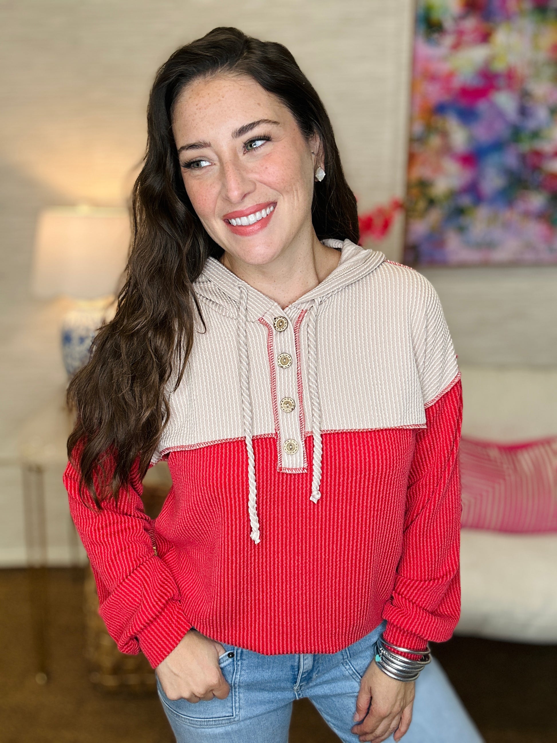 Introducing The Bent Hoodie—your new favorite cozy essential with a twist! This ribbed pullover hoodie features bold color-block detailing that keeps things visually interesting. The structured ribbing provides a flattering fit while the contrasting color panels add modern edge to a classic silhouette. Perfect for layering or wearing solo, this hoodie proves comfort doesn't have to be boring.