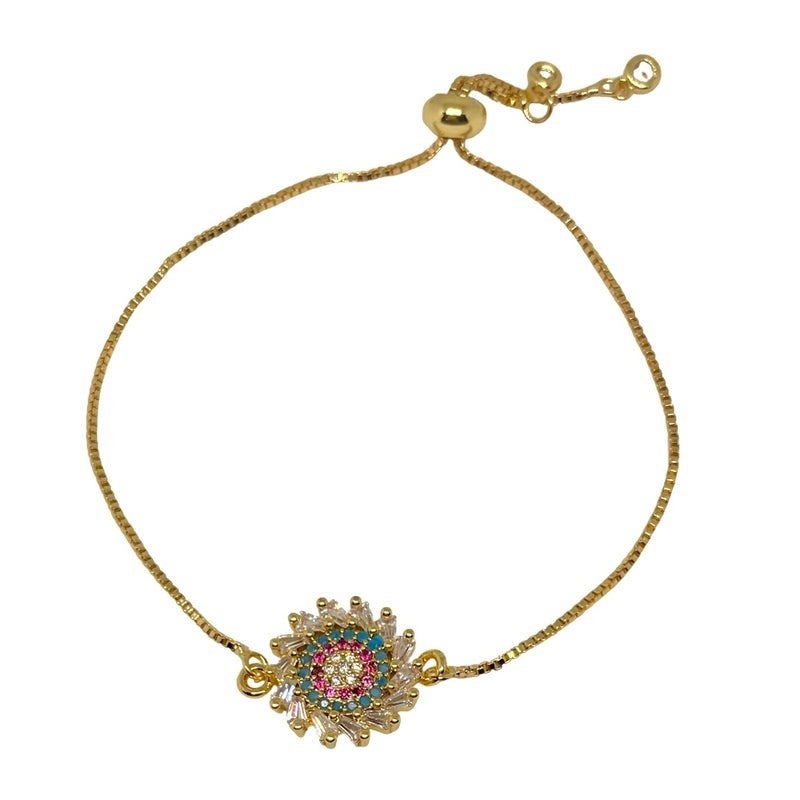This beautiful bracelet will look so pretty on your arm! A sliding bead makes this bracelet adjustable-pull it to be looser or tighter-will fit any wrist!