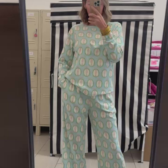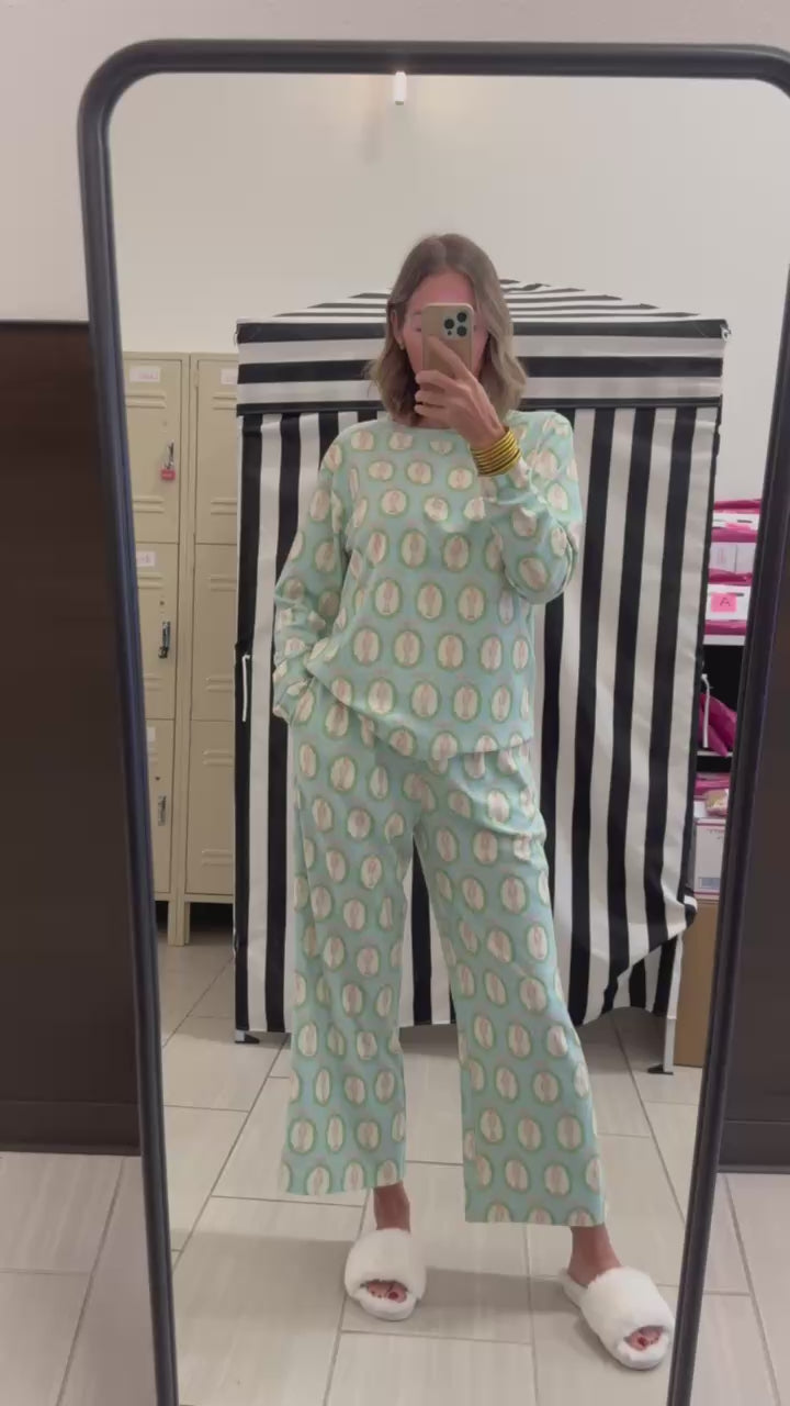 Snooze in style with the Haddie—the cutest pajama set that's almost too adorable to sleep in! Featuring a cozy long-sleeve top and cropped pants with a hassle-free elastic waistband (drawstring-free, because who needs the fuss?), this set is pure comfort goals.