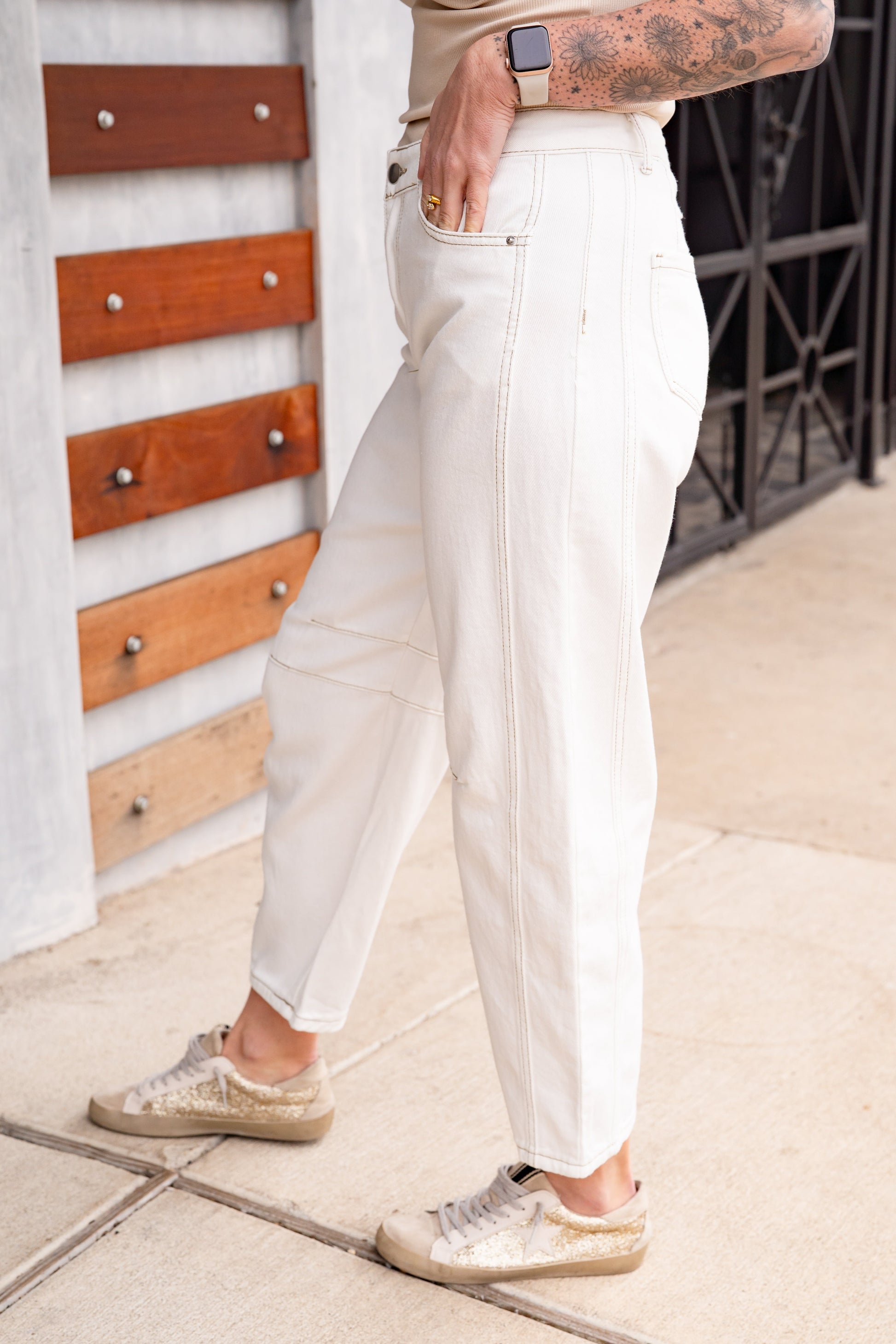 Say hello to our custom Buckley Jeans"€�designed by Ashley and ready to steal the show! These low-rise barrel jeans are the perfect mix of edgy and chic, making them easy to style up or down. Ashley and Katie rock the mediums, while Kim loves the large.