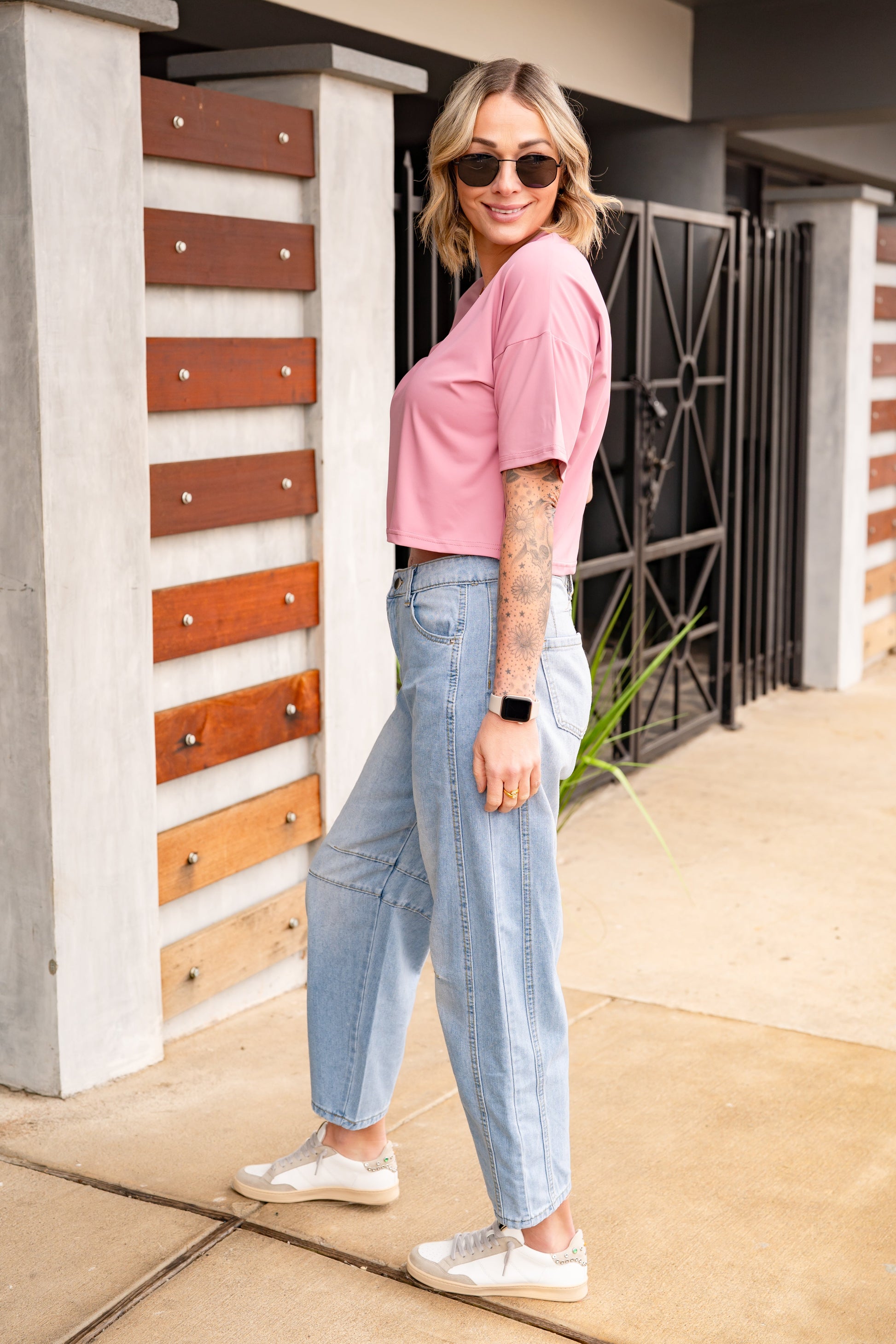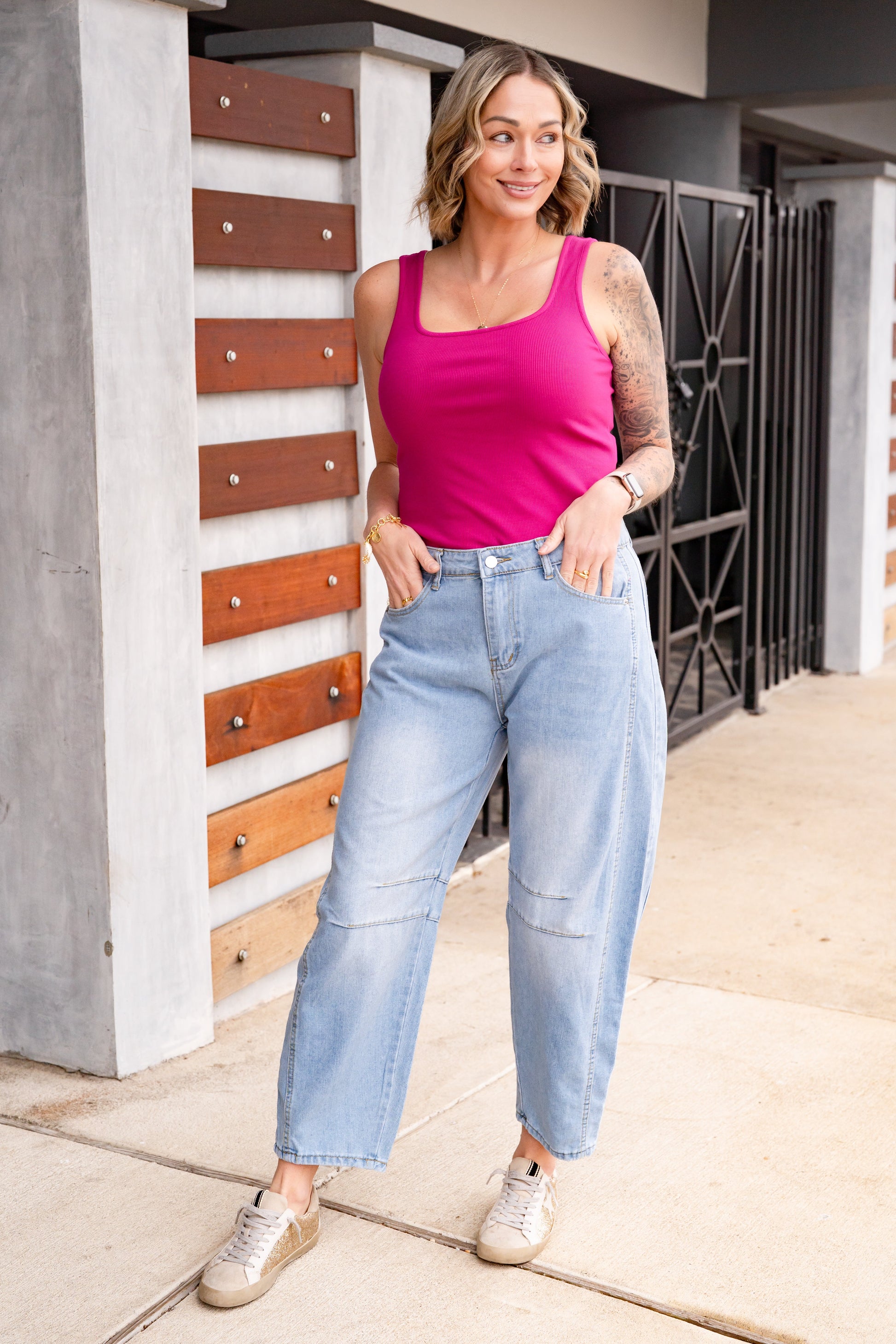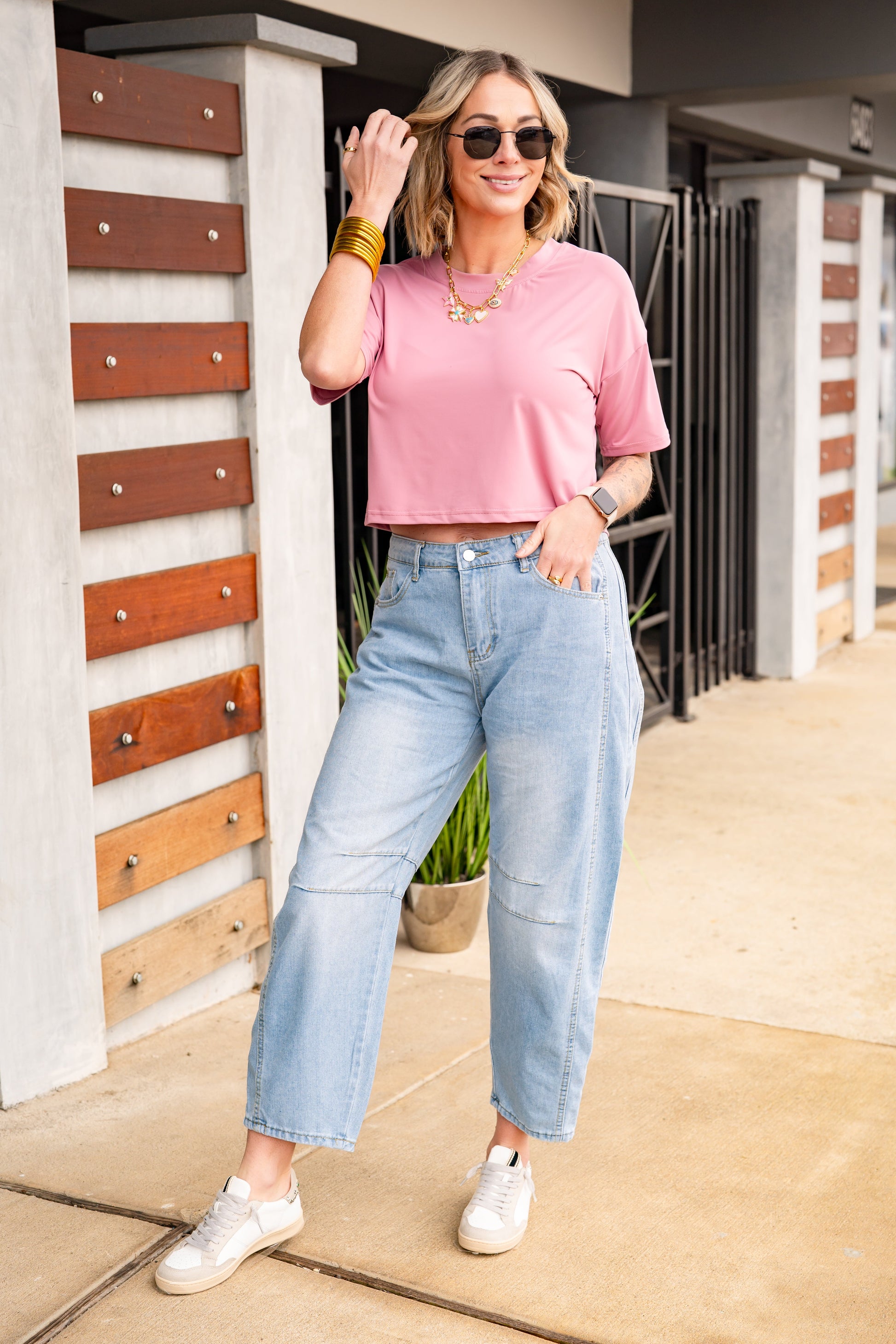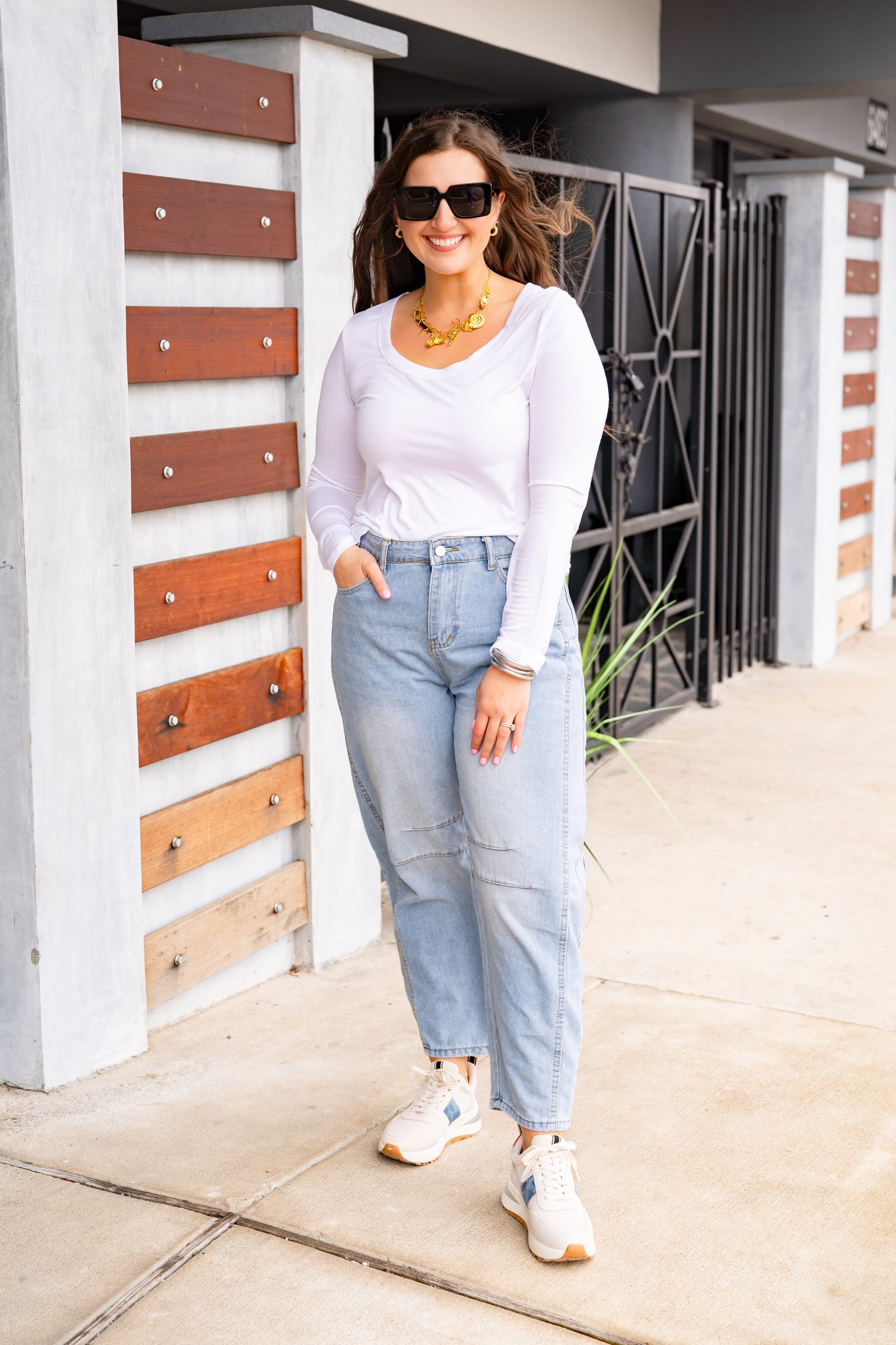 Say hello to our custom Buckley Jeans"€�designed by Ashley and ready to steal the show! These low-rise barrel jeans are the perfect mix of edgy and chic, making them easy to style up or down. Ashley and Katie rock the mediums, while Kim loves the large.