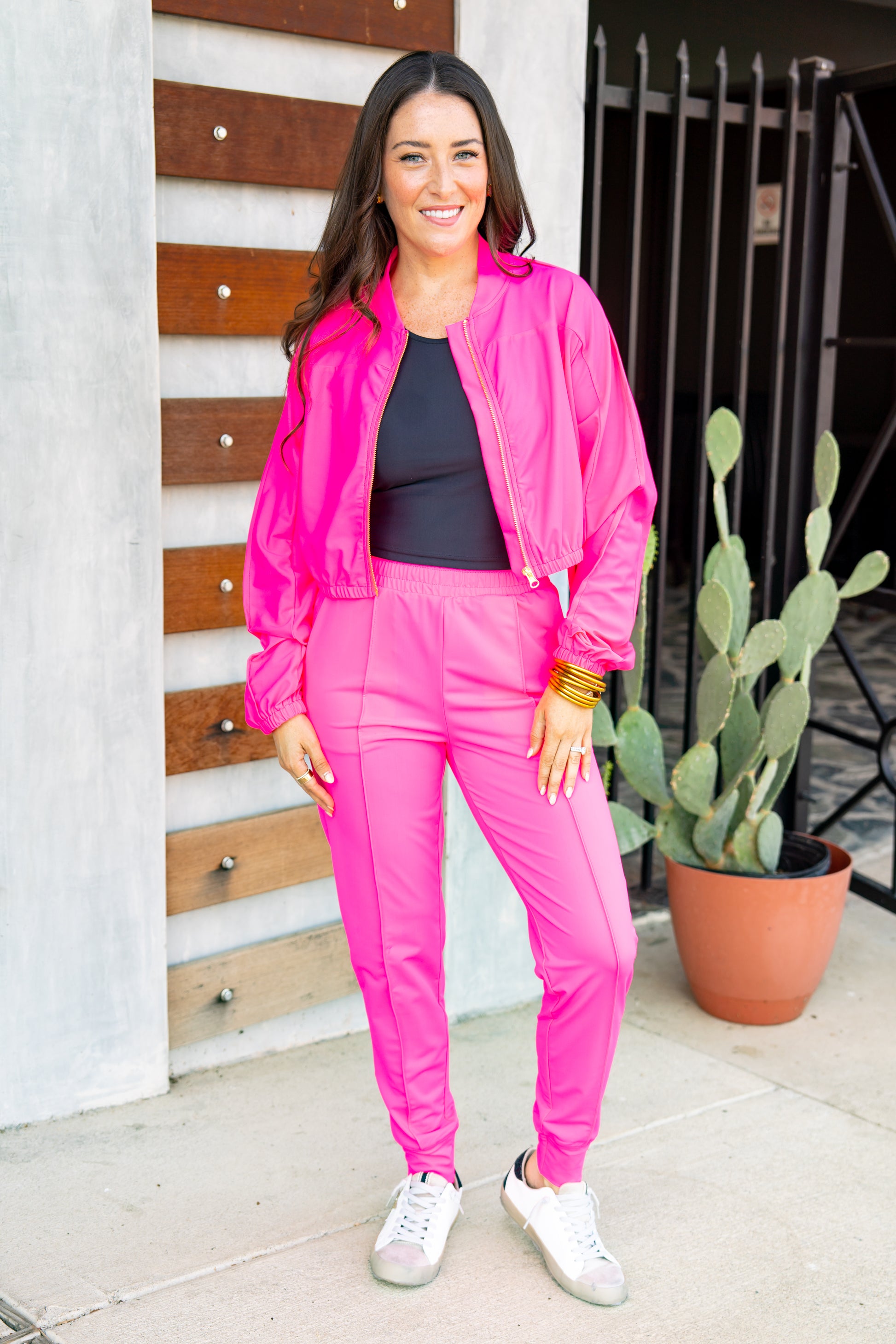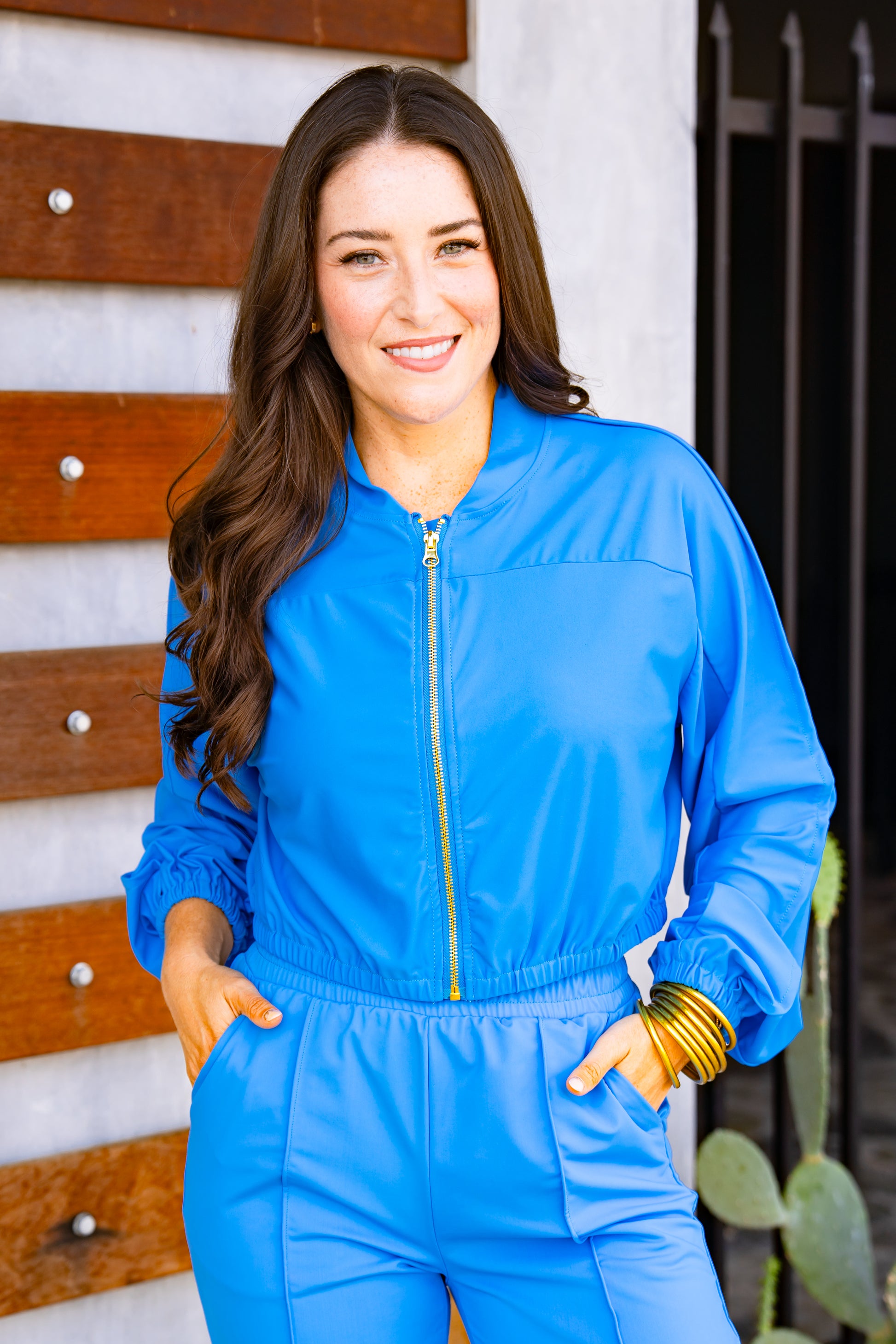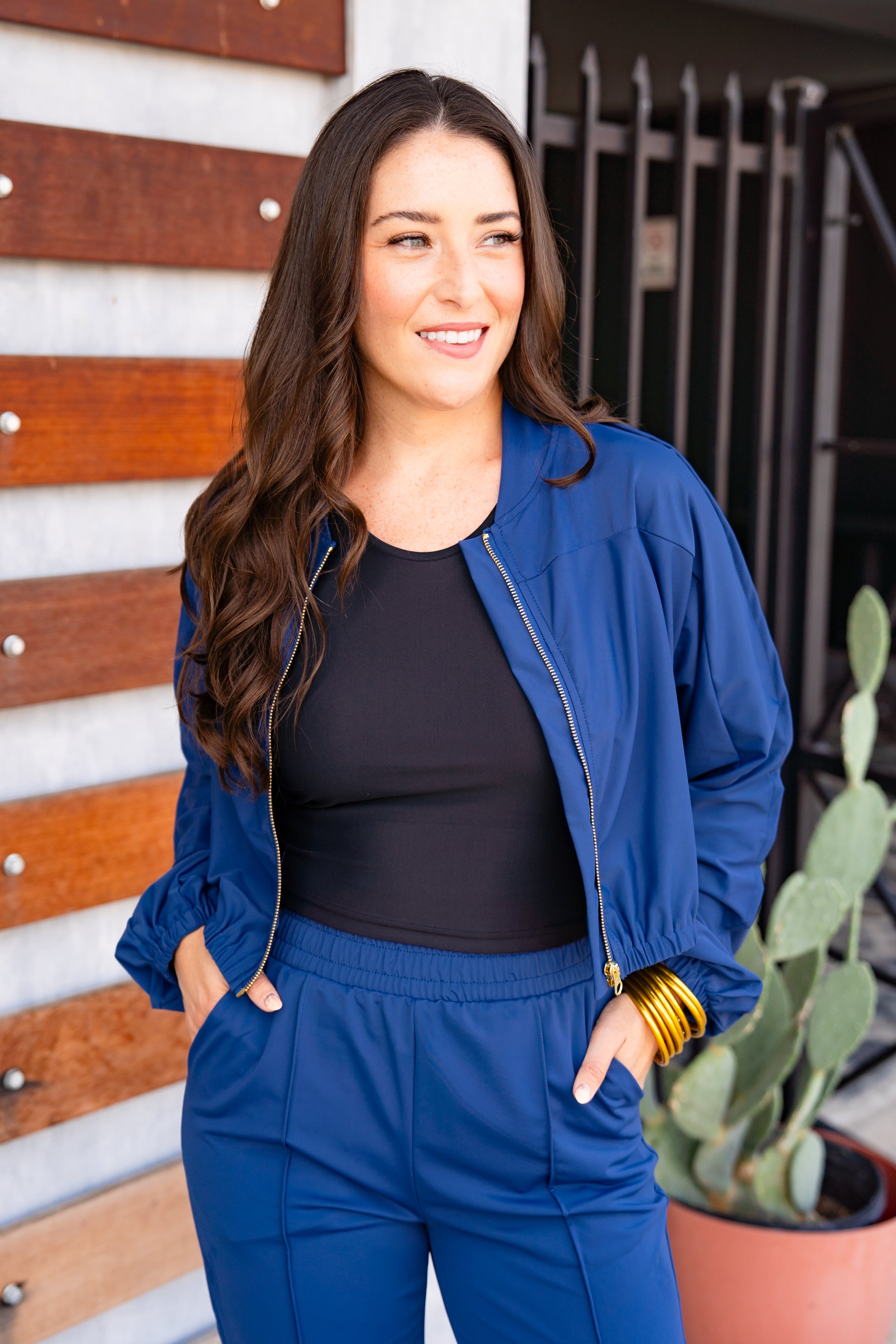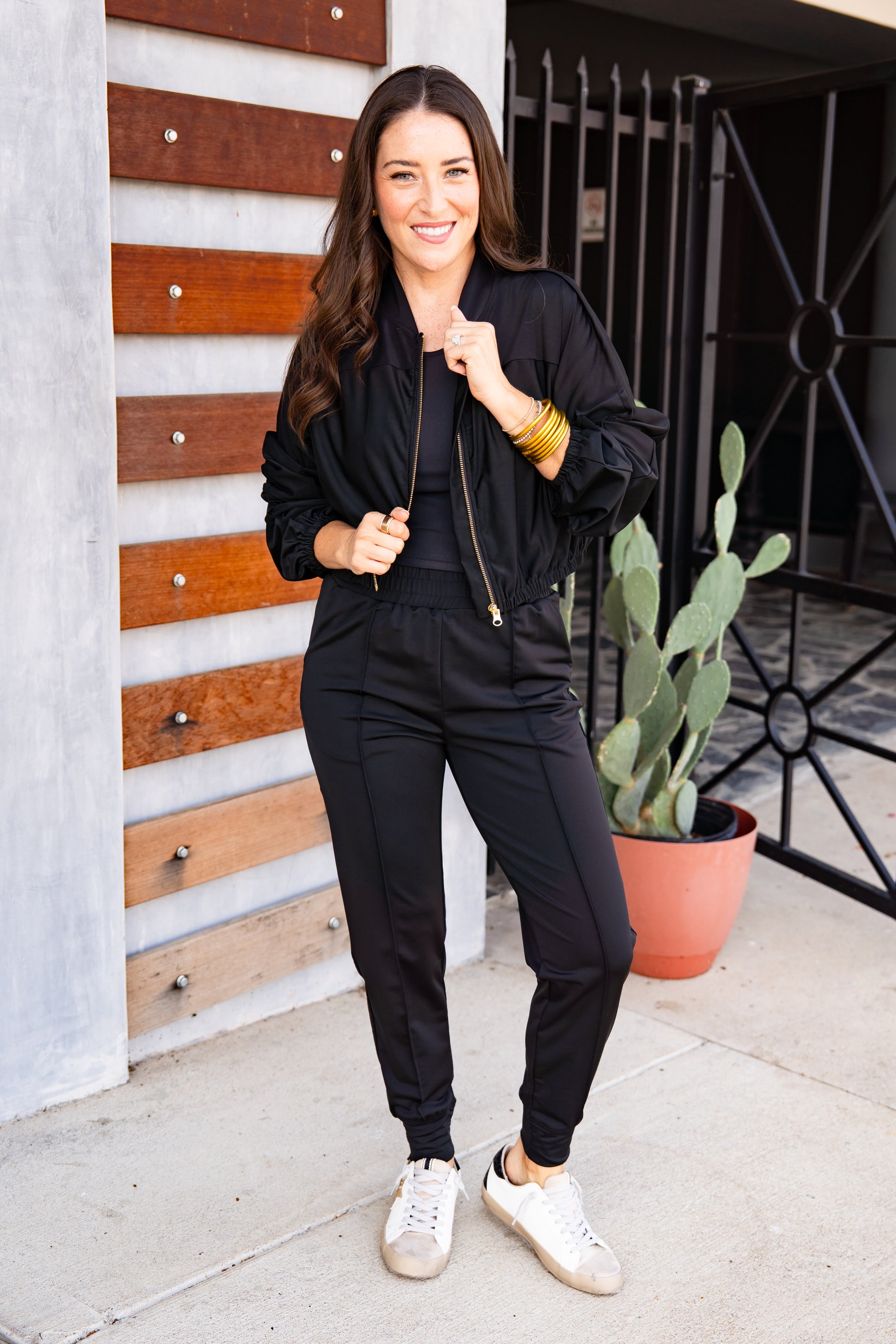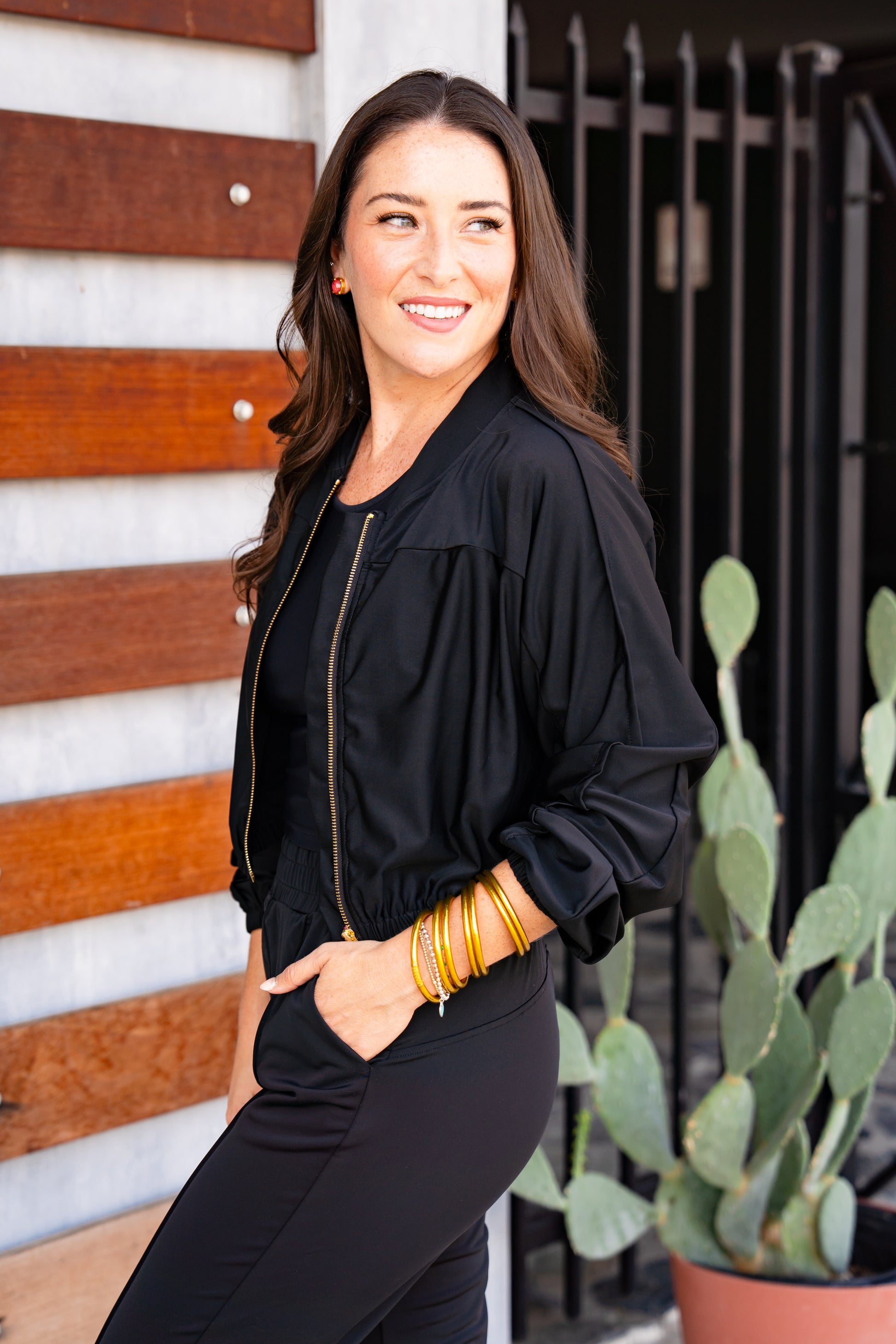Introducing the Buckley Bomber Jacket, a stylish and chic addition to your wardrobe. This cute cropped bomber features a gold zipper and elastic wrists for a trendy look. Available in 5 colors to match our Buckley shorts and joggers. (Get ready to turn heads!)