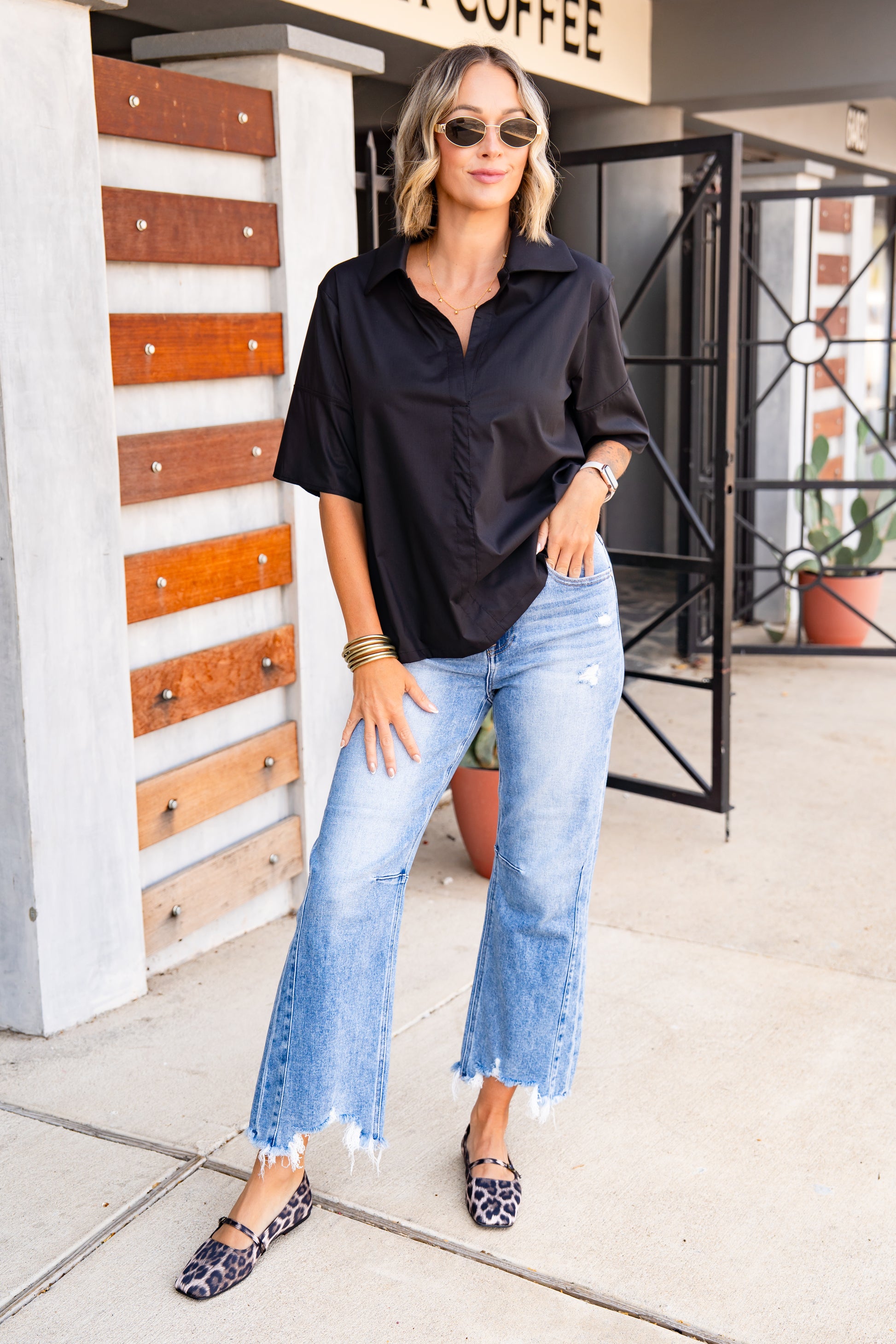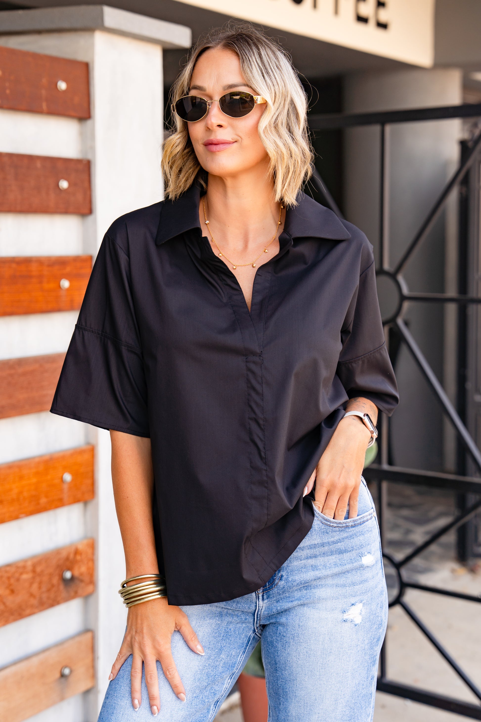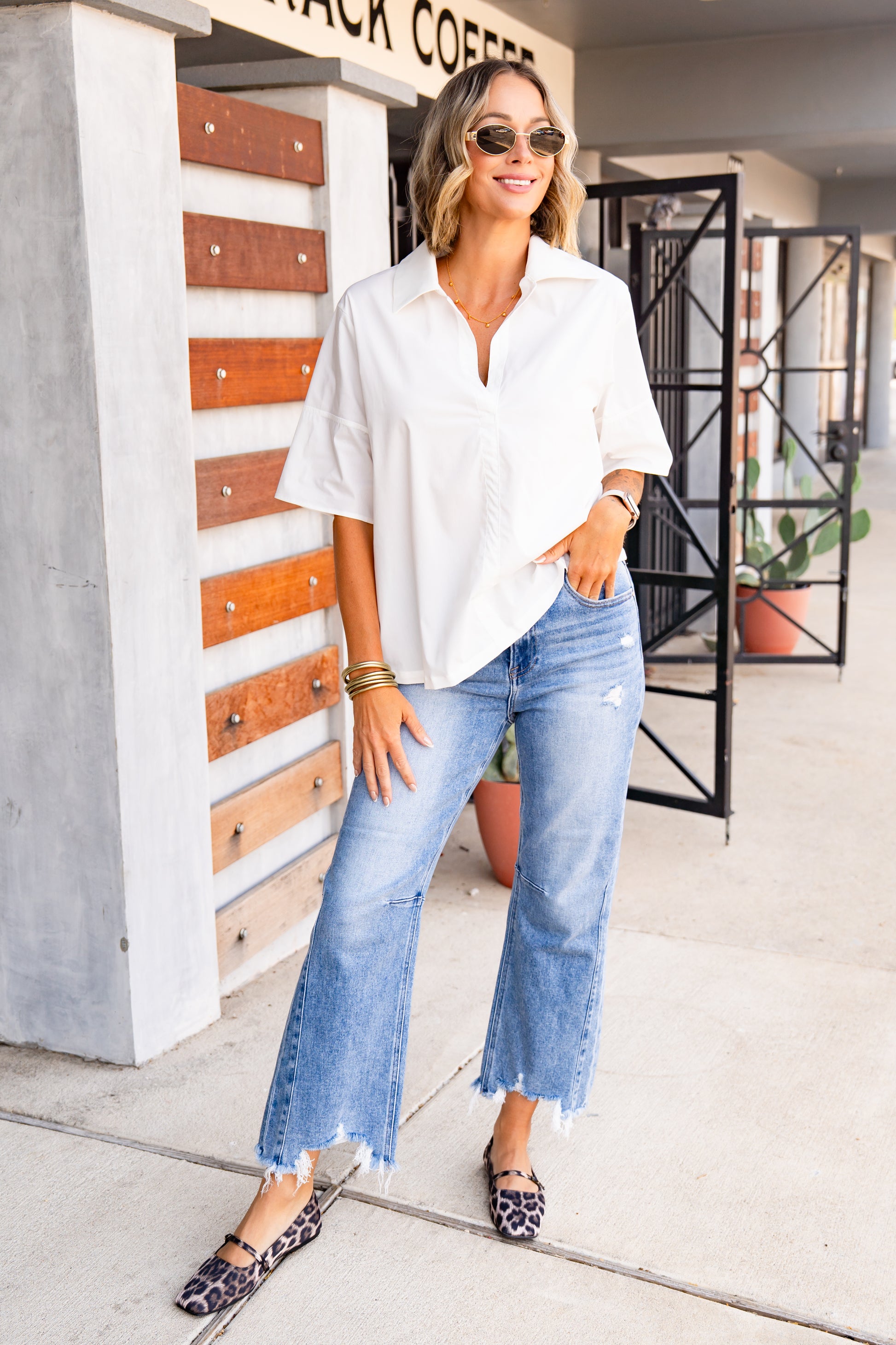 This top is the perfect blend of casual comfort and effortless style. Made from soft, breathable cotton, this top features a new long length fit with versatile long short sleeves that can be worn down or folded up for a laid-back look. With its clean, button-free design, it' s an easy go-to piece that pairs perfectly with high-waisted jeans, skirts, or Buckley Shorts for a chic, everyday vibe.