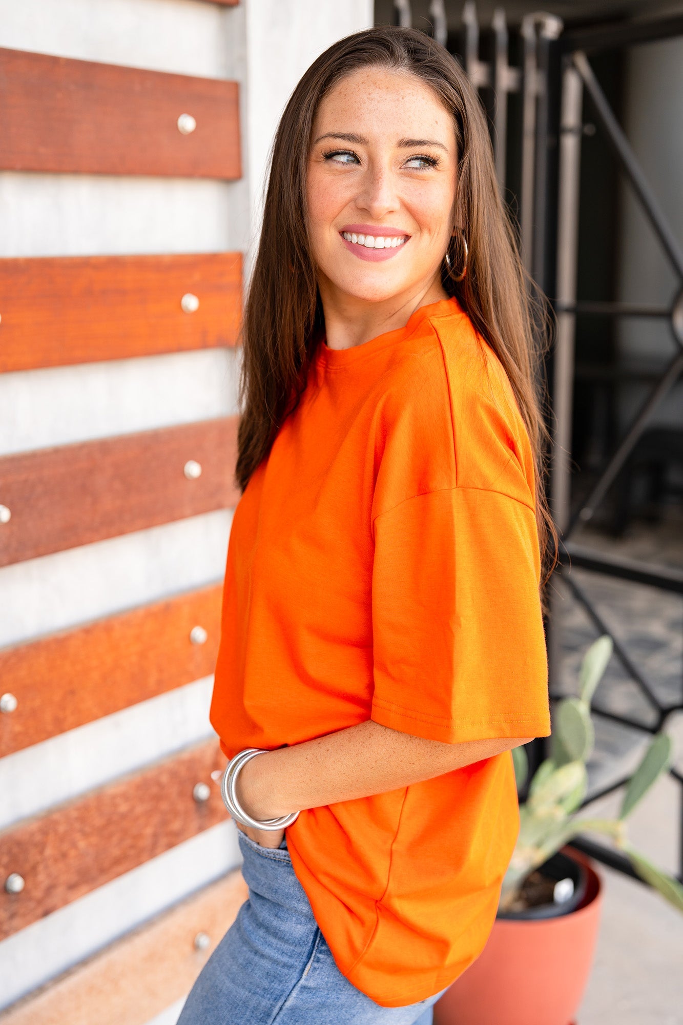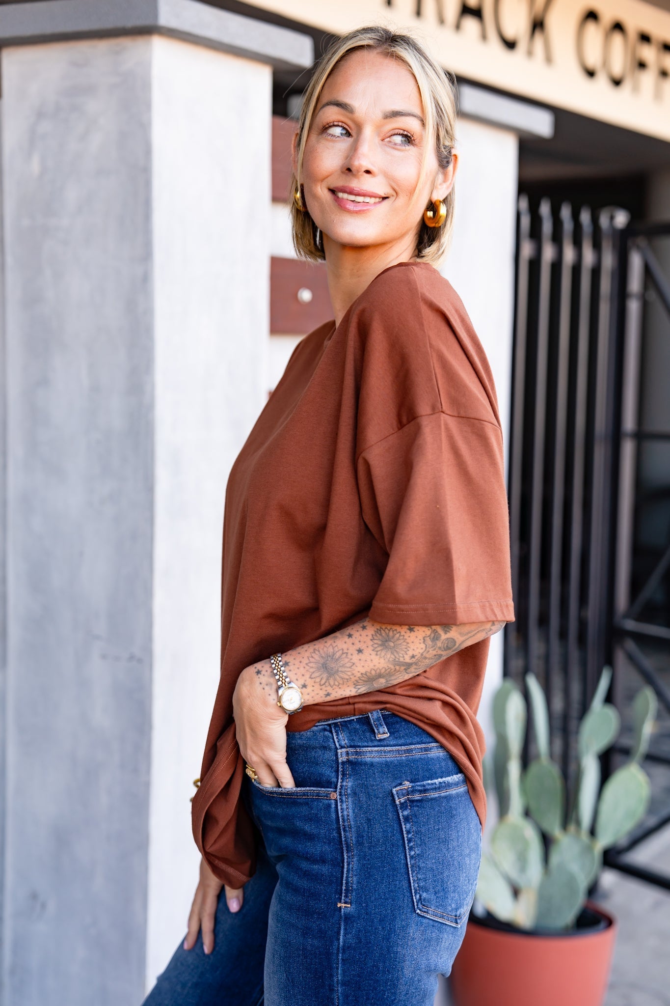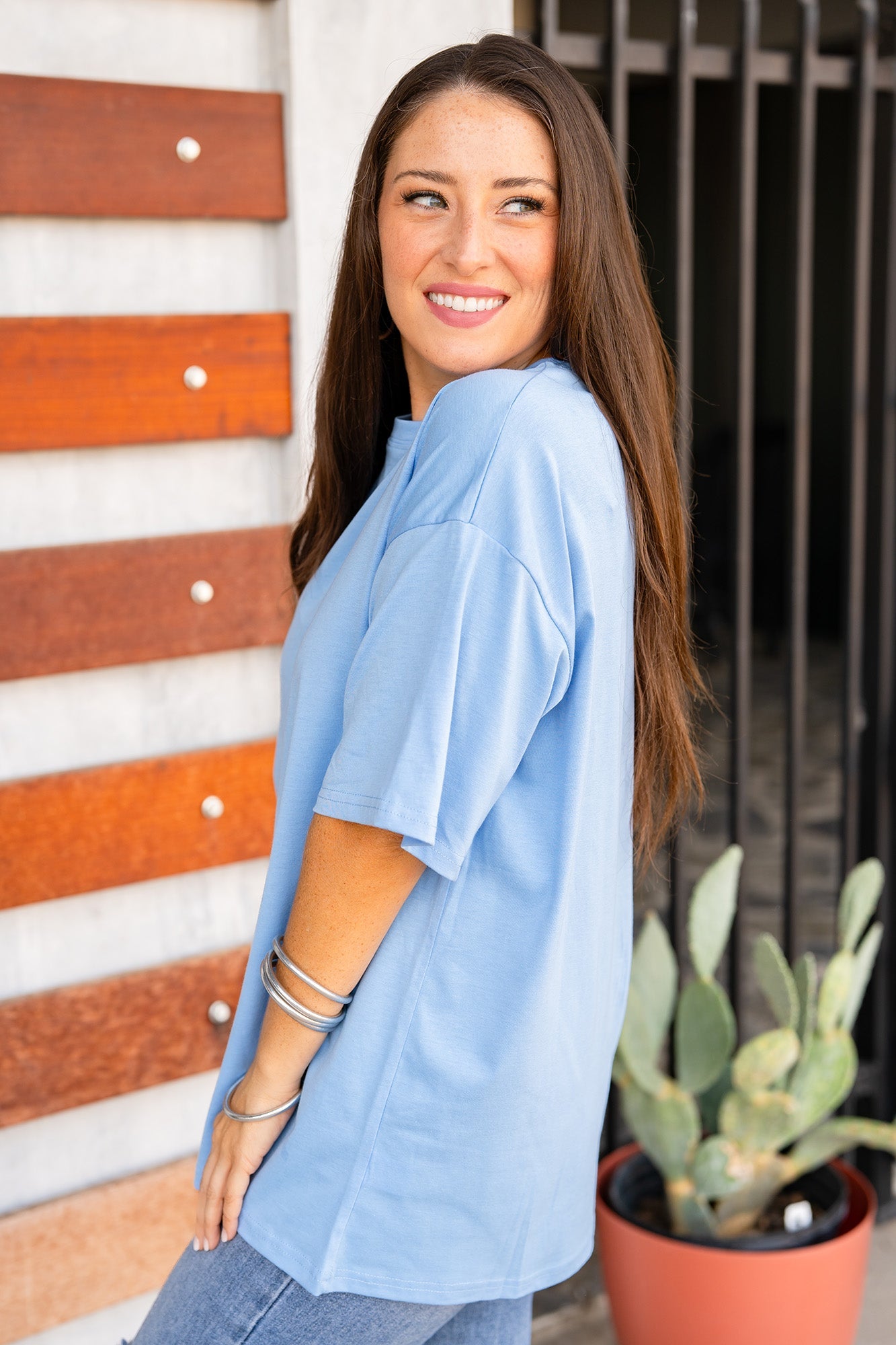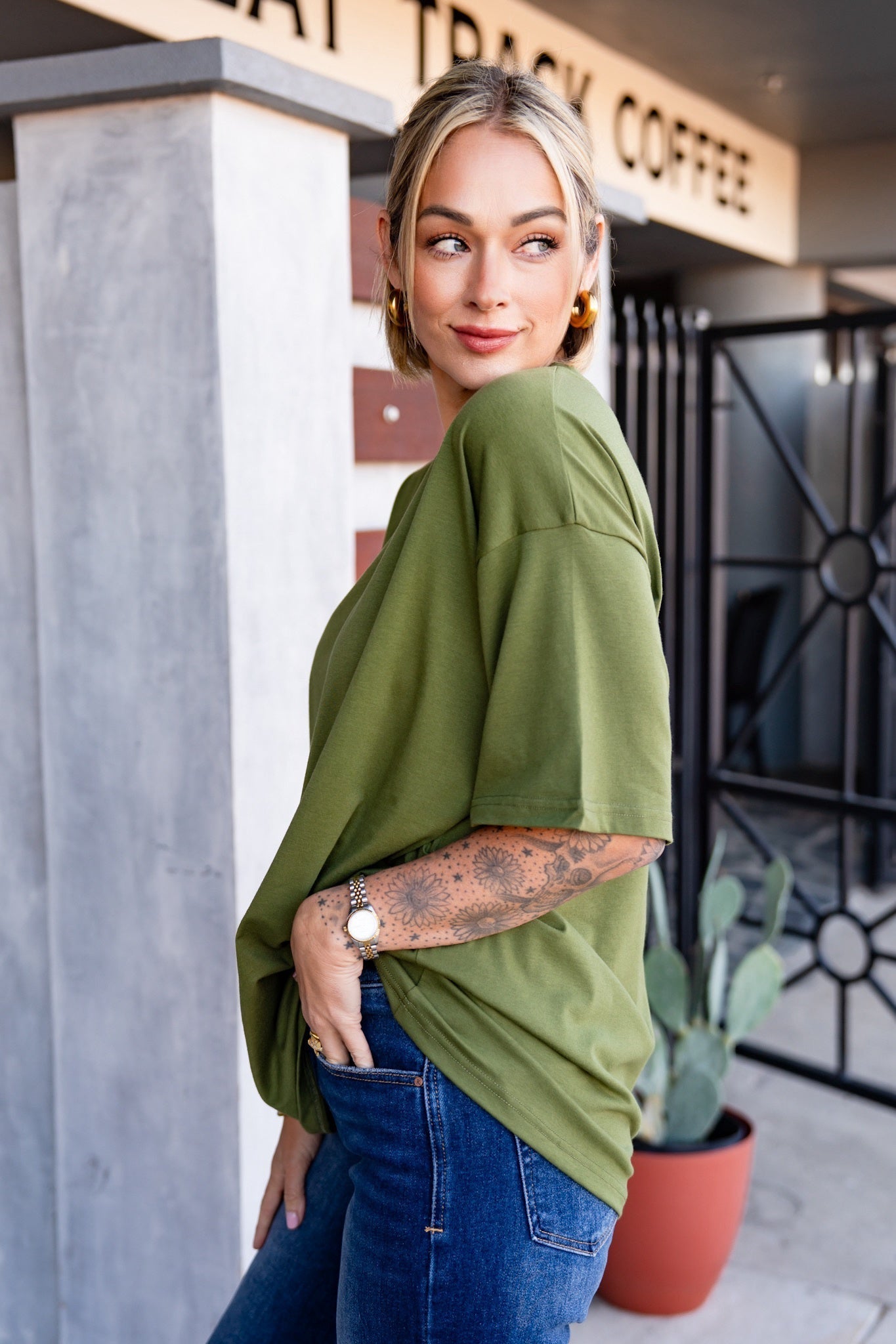 Meet the ultimate oversized tee, designed by Ashley as her definition of the perfect fit. Inspired by the classic boyfriend tee, it features long short sleeves, a high crew collar, and premium structured fabric that drapes effortlessly no matter how you style it! You’re going to love it!