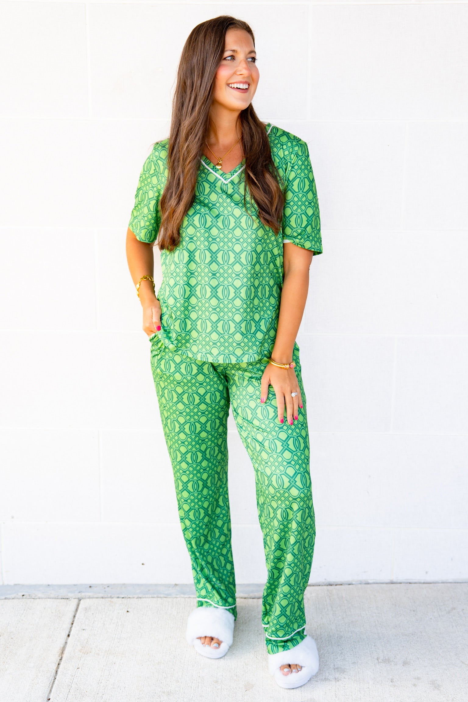 The Buckley Stevie 2.0 Set in Regal Green is the best buttonless pant set for stomach sleepers. With a looser v-neck top and loser waistband, this set provides ultimate comfort. The revamped design includes an elastic drawstring for a secure fit. Say goodbye to uncomfortable sleep!