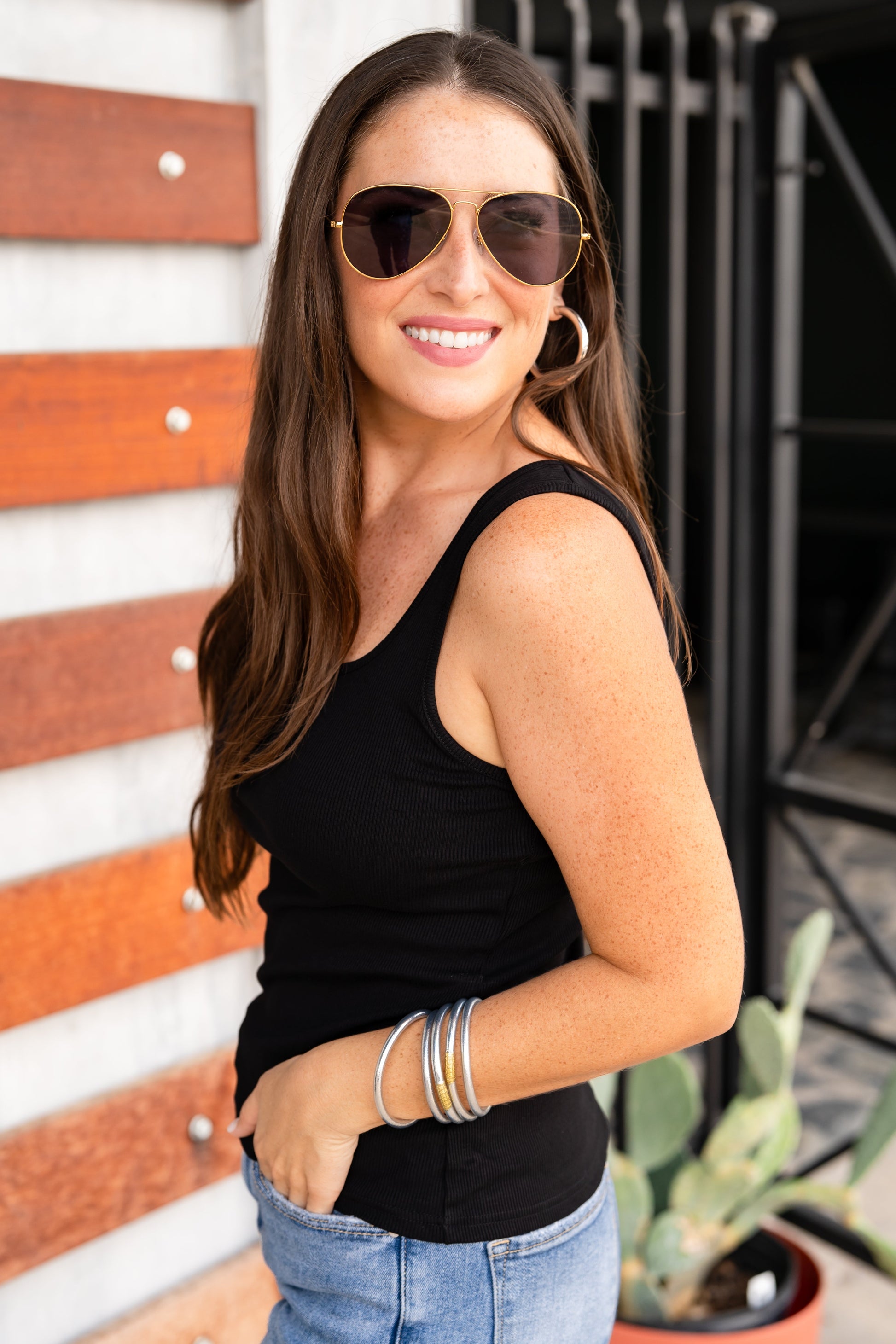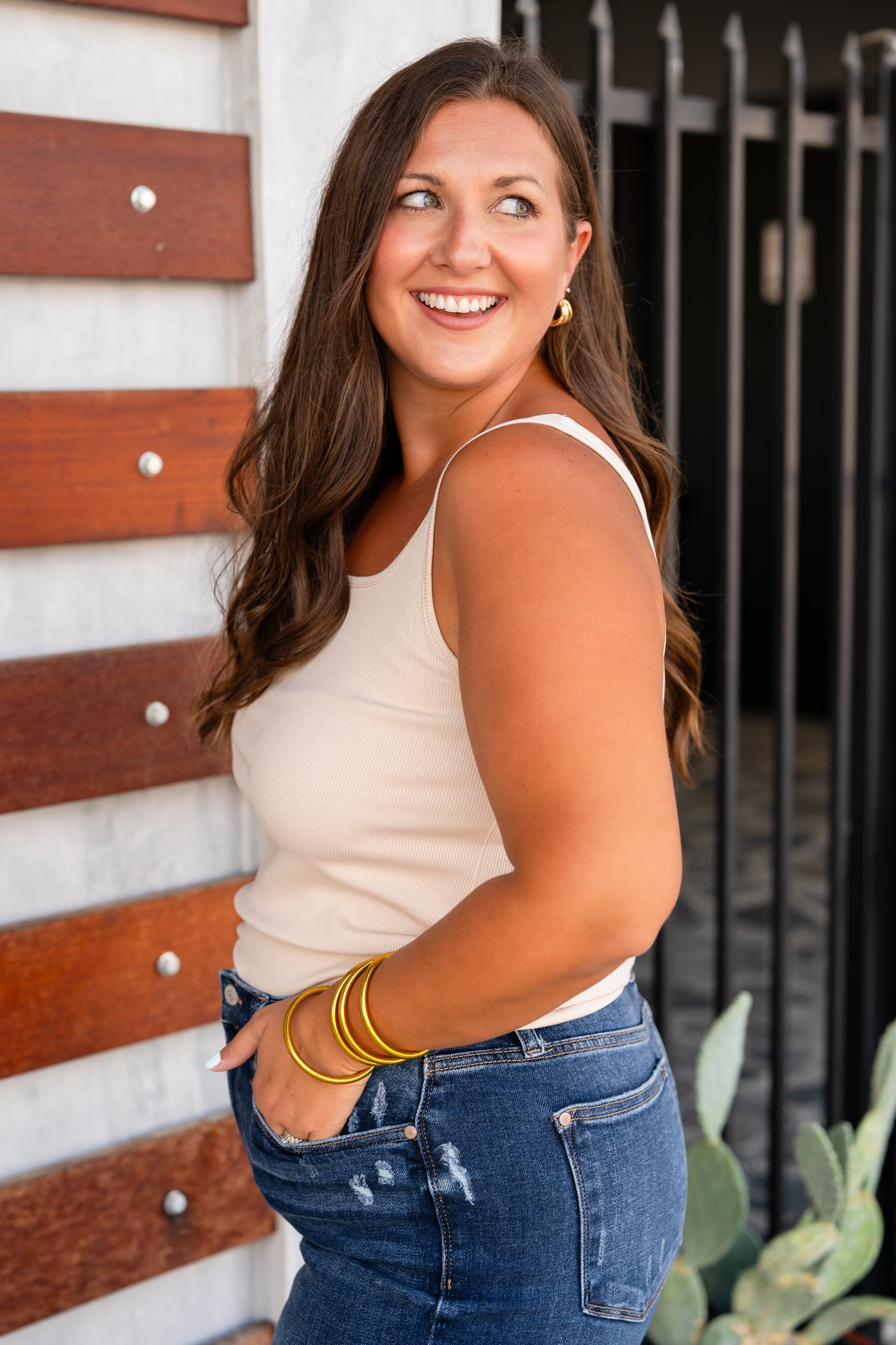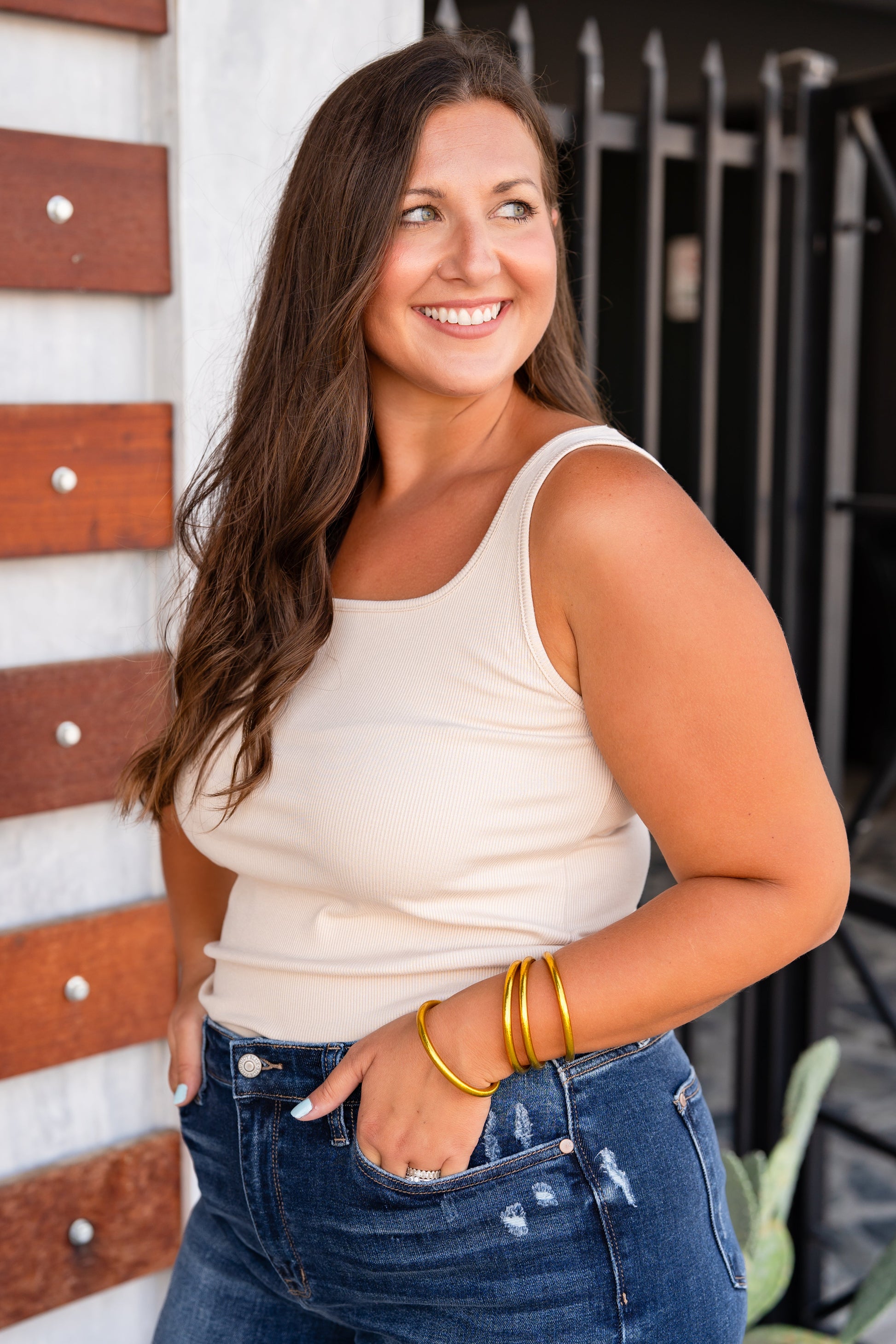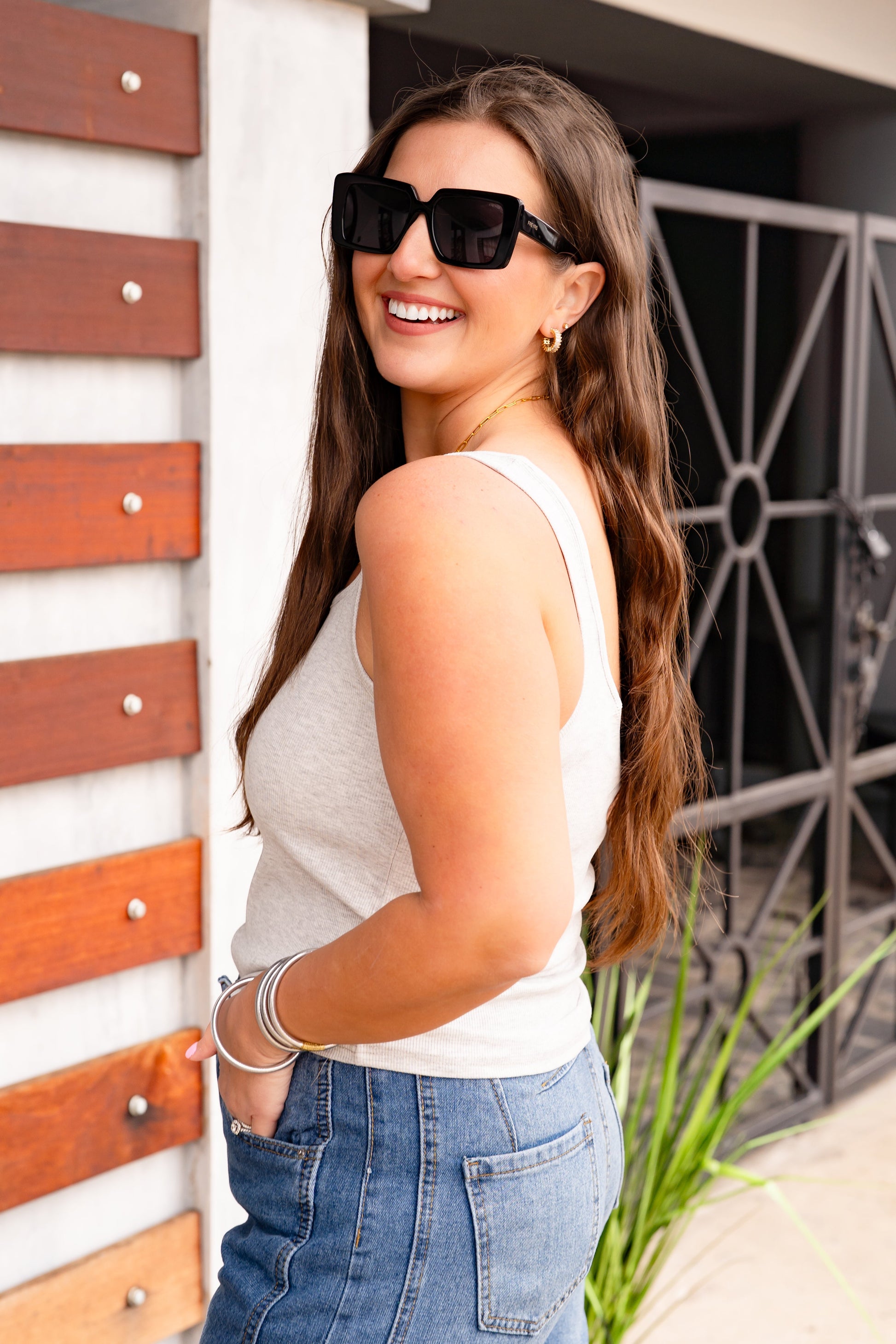 The Ultimate Tank is the timeless staple your wardrobe has been missing. Crafted from our signature ultra-stretchy ribbed fabric, this tank is designed for both comfort and versatility. The flattering scoop neckline and high-cut sides provide the perfect fit, ensuring full coverage while keeping things sleek. With just the right length"€�not too long, not too short"€�it looks effortless whether worn out or tucked in. Plus, the thick straps actually cover your bra, making it the ultimate layering essential. Transition seamlessly into spring and summer with a tank that' s as easy to style as it is to love.