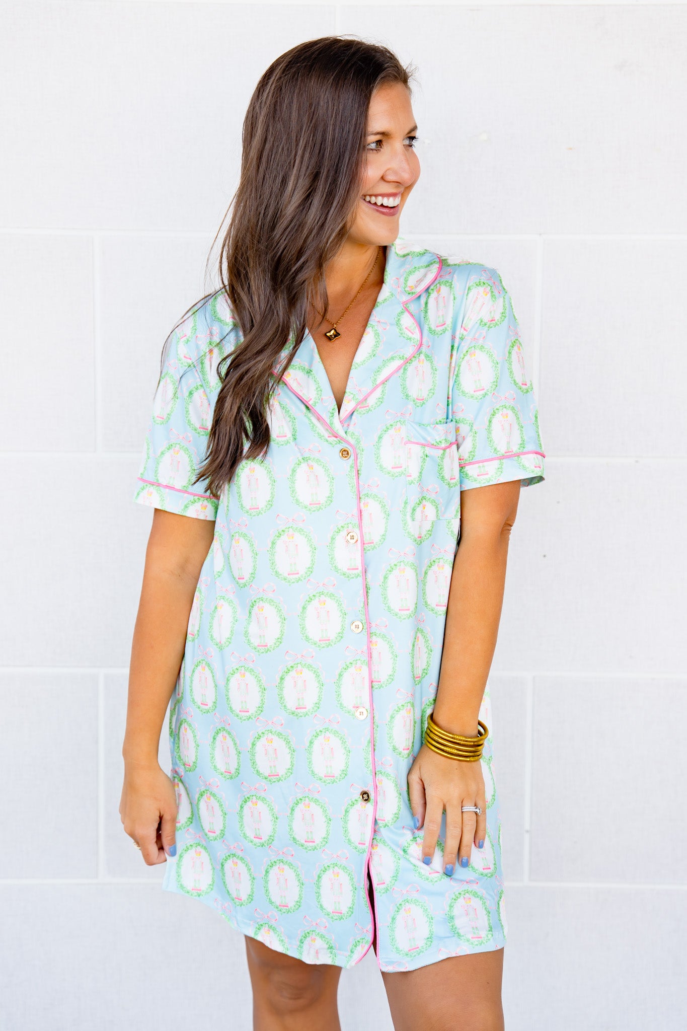 The Ellesyn Gown features a button-down front, adding a touch of classic style, while 5" side slits provide ease of movement. The longer short sleeves offer extra coverage, and a convenient breast pocket adds a practical yet stylish detail.