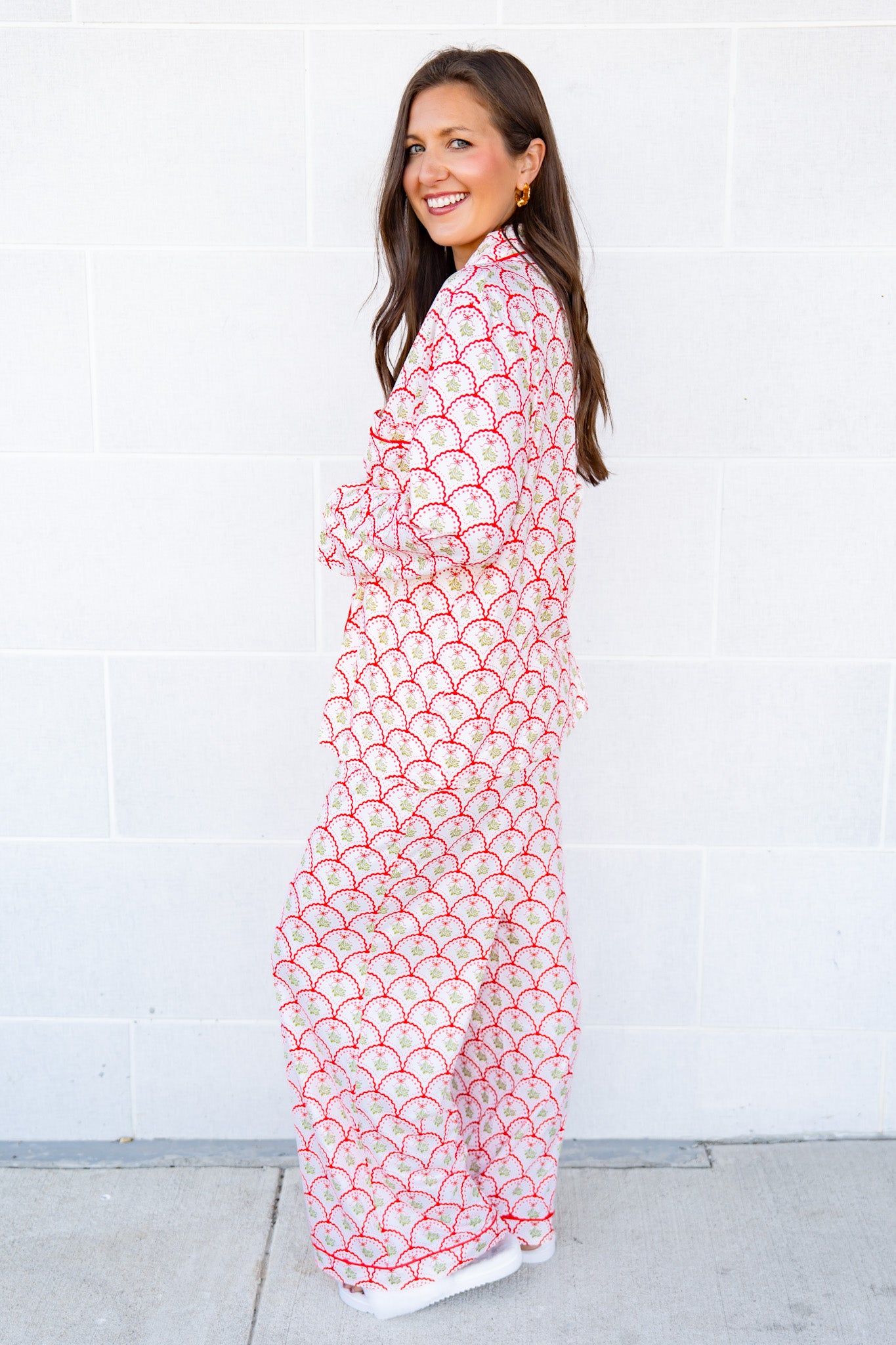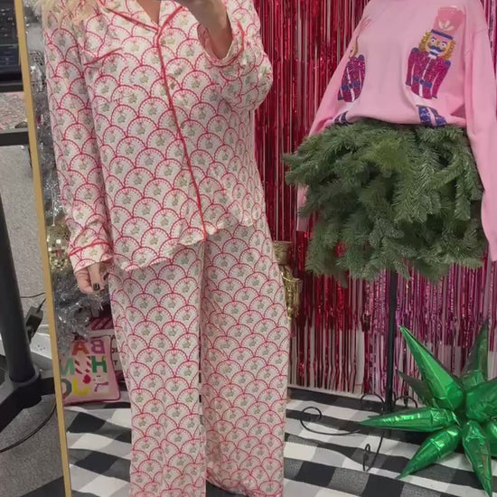The Buckley Asher Set is the fun cousin of the classic Ashley Set, giving you a slightly looser fit with all the cozy vibes. This long-sleeve top and pants combo features crisp piping and four gold-colored buttons on both pieces for a charming twist. Plus, the super stretchy elastic waistband keeps comfort front and center.