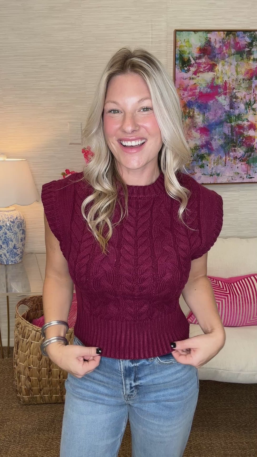 Meet your new favorite layering piece: the Cable Detail Crewneck Short Sleeve Vest Sweater! With playful cable knit patterns and trendy capped sleeves, this sweater adds texture and charm to any outfit. Whether worn solo or layered, it’s a fun way to keep cozy while showing off your style with a dash of whimsy. Available in two lively colors to brighten up your closet!