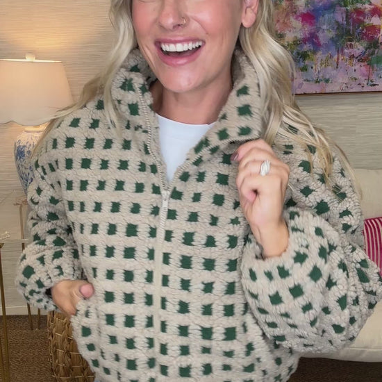 The Checkers Jacket-AS turns up the fun with its cozy sherpa fabric and bold checker pattern. Zipping up has never felt so playful and snug—perfect for adding a quirky touch to chilly days.
