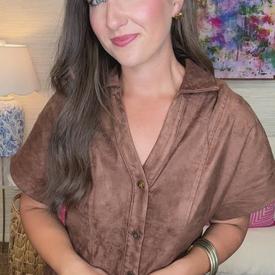 Step out in style with The Chestnut Suede Dress—a charming midi silhouette featuring a V-neck and cap sleeves. The button-up front adds a touch of vintage flair, while the rich suede fabric brings cozy luxury to your day or night look.