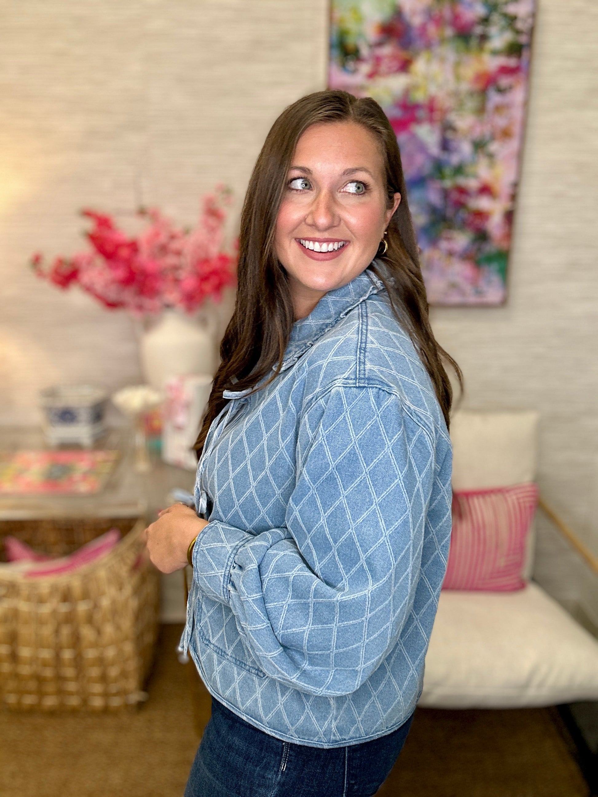 Quilted denim jackets with lining in them.