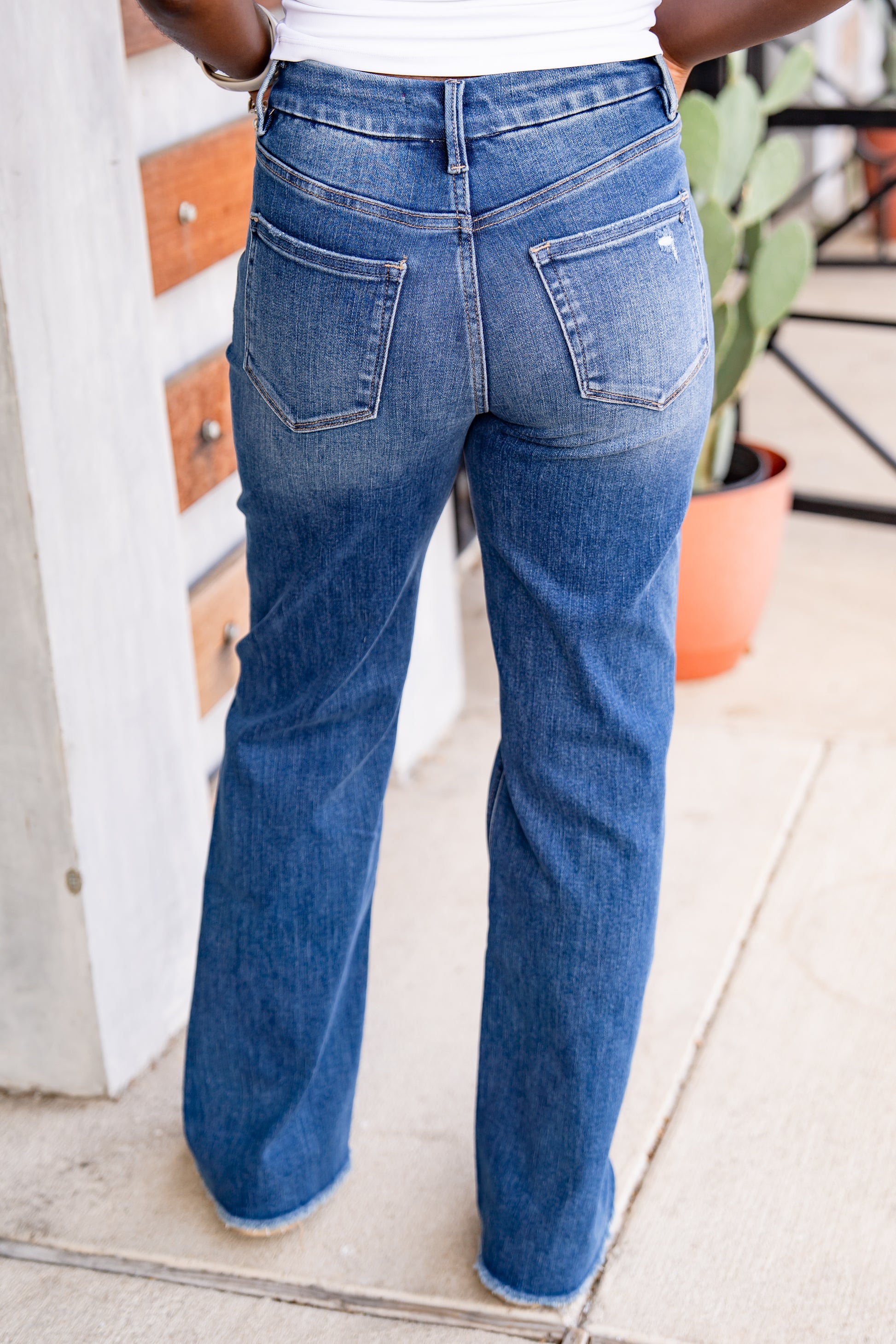 The Billie Jeans are hands-down one of the most loved pieces we've ever carried and it’s now available in a dark wash! If you know, you know. If you don't this is your sign to try them. These are those jeans you'll actually want to wear all day. Made with a dark-wash denim that's soft, stretchy, and breathable, and designed with a wide-leg cut and raw hem that you can trim to your perfect length (tall girls, short girls these are for everyone). They're high-waisted with a magical waistband made from viscose, which means no digging, no pinching, just crazy good stretch.
