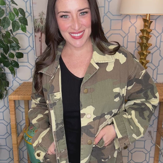 Blend in or stand out—your choice with this playful camo jacket that's equal parts practical and fun. The classic camouflage pattern brings that cool, adventurous edge to your everyday wardrobe, while the relaxed fit keeps you comfortable whether you're running errands or plotting your next adventure. Layer it over anything for instant attitude, or wear it solo as your statement piece. Perfect for those days when you want to add a little edge to your look without taking yourself too seriously, this jacket proves that camo is always in style. Grab it and get ready to make an entrance—or a sneaky exit, depending on your mood.