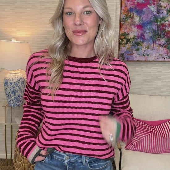Keep it casual and cheerful with The Easy Life Top! This playful striped drop shoulder sweater comes in two colors, offering a relaxed fit that’s perfect for laid-back days. Soft and stylish, it adds a comfy pop of fun to your everyday wardrobe.