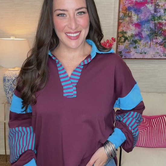 Score style points with The Essential Pullover—a long sleeve rugby-inspired top bursting with fun stripes and bold color blocks. Available in four playful colors, it’s the perfect mix of sporty charm and casual fun for your everyday wardrobe.