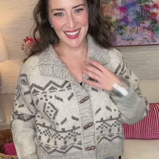 Say hello to The Fair Isle Toggle Sweater—your new go-to for effortless charm. This cardigan features a relaxed open collar and fun toggle buttons that make getting dressed feel like playtime. The classic Fair Isle pattern adds timeless appeal while the easy-to-fasten toggles keep things breezy and casual. Layer it over anything for instant personality, or wear it solo for a laid-back vibe that's equal parts cozy and cool. Who knew a cardigan could be this much fun?