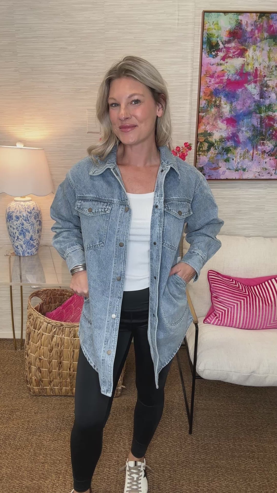 The Fate Denim Shacket is your new playful go-to with rounded side pockets and a versatile washed denim look. Wear it as a cozy shacket or a cool dress—either way, you’re ready to turn heads and keep things effortlessly fun.