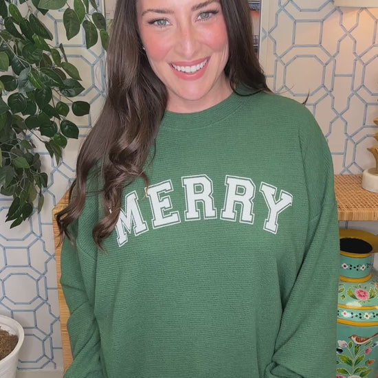 The Honey Knit Merry Pullover brings understated holiday charm to your wardrobe. This casual comfy pullover in rich hunter green features "merry" spelled out in crisp white—a sophisticated take on seasonal style. Soft, versatile, and endlessly wearable, this pullover captures the spirit of the season while keeping you cozy all day long.