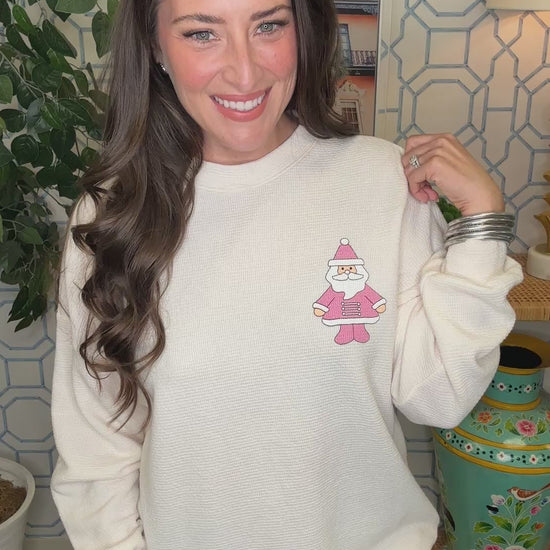 The Honey Knit Pink Santa Pullover brings whimsical holiday charm to your wardrobe. This cream soft casual pullover features an adorable pink Santa figure that celebrates the magic of the season with a modern twist. Cozy, charming, and totally unique, this pullover is your new favorite way to embrace the holidays while staying comfortable and cute all day long.