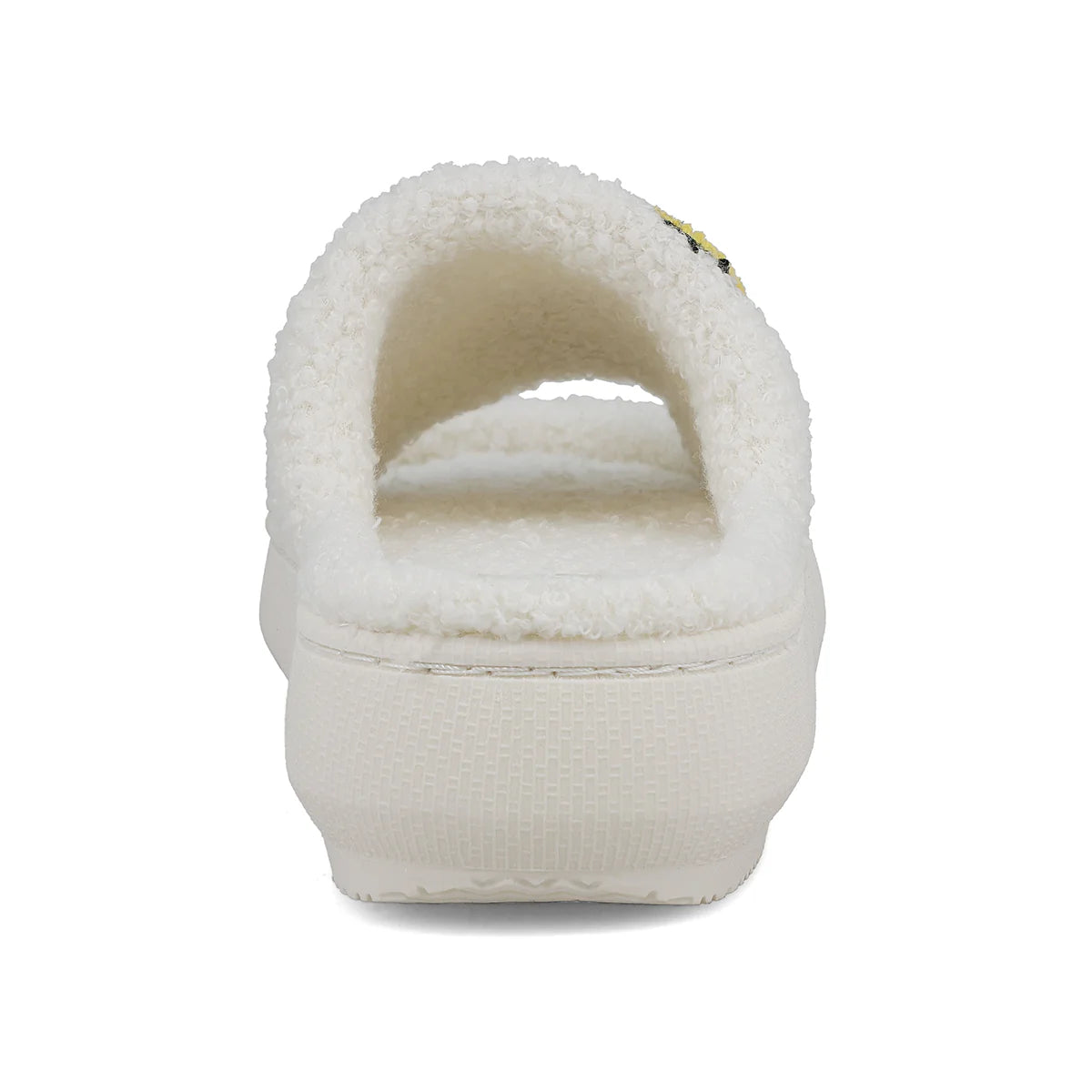 Slip into ultimate comfort with the HUGGIE, where a slipper meets a sandal for the perfect cozy combo. Made with faux shearling for extra warmth, features a 1.4-inch platform outsole and a unique graphic for a touch of style. Because who says comfort can’t have a little fun?
