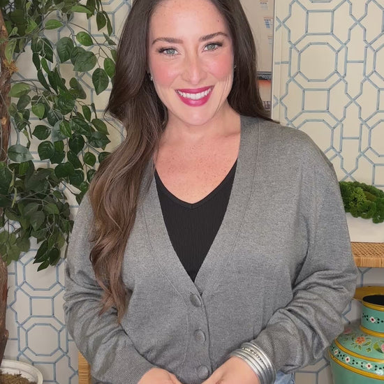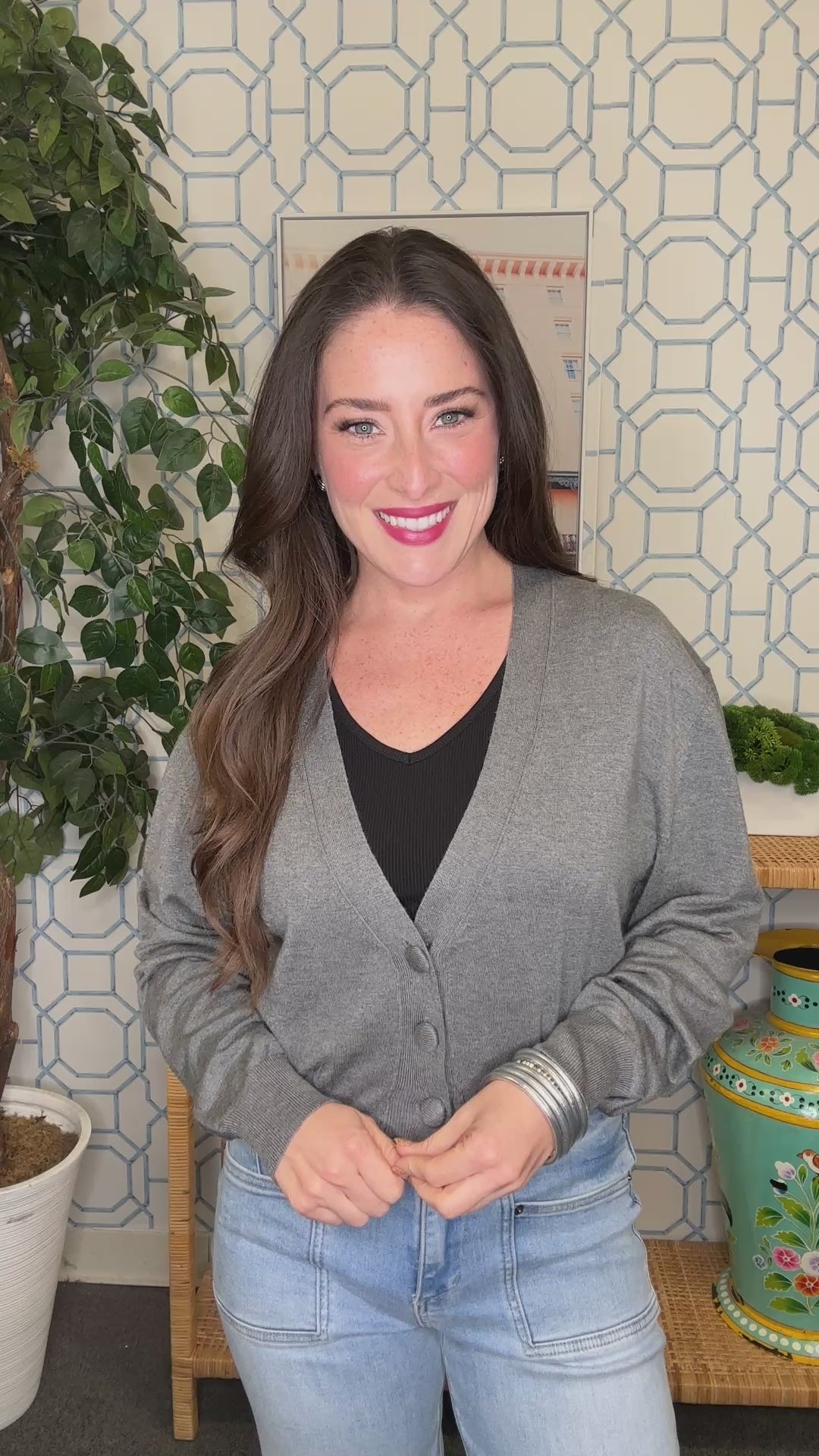 Introducing the Kash Cardigan—your new favorite layering piece that's anything but basic! This cropped beauty features a flattering deep V-neckline and three covered button closures for effortless style. Crafted from super soft fabric that feels like a dream against your skin, it's versatile enough to wear as a standalone top or layer over your favorite tees. Available in two gorgeous colors, the Kash is the cozy-chic essential your wardrobe has been waiting for.