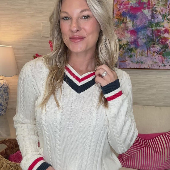 Get game-day ready with The Knit Varsity Sweater! This playful cable knit design brings classic varsity vibes with a cozy twist, perfect for layering up with a fun, spirited touch. Stay warm and stylish whether you’re cheering from the sidelines or hanging out with friends.