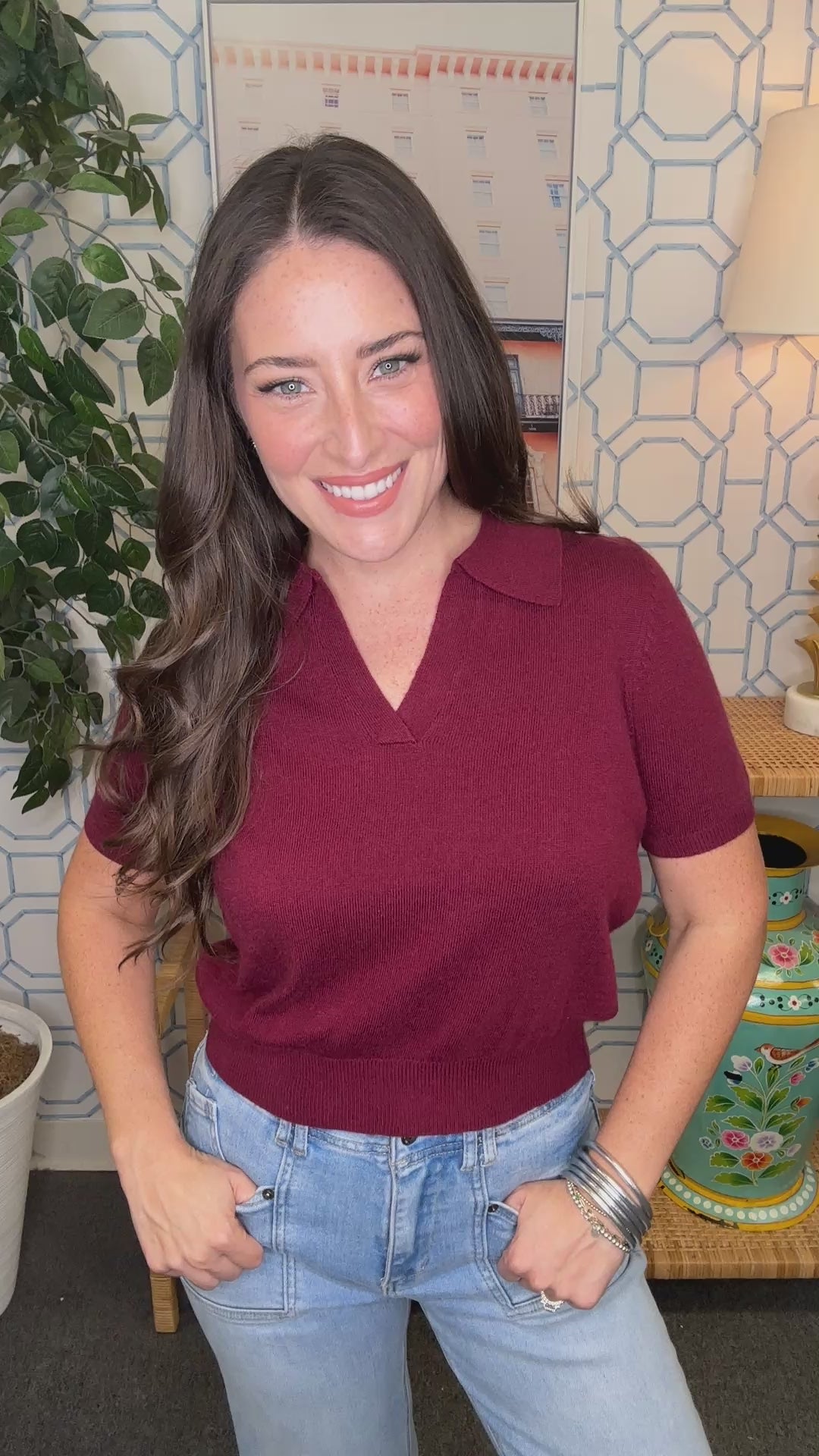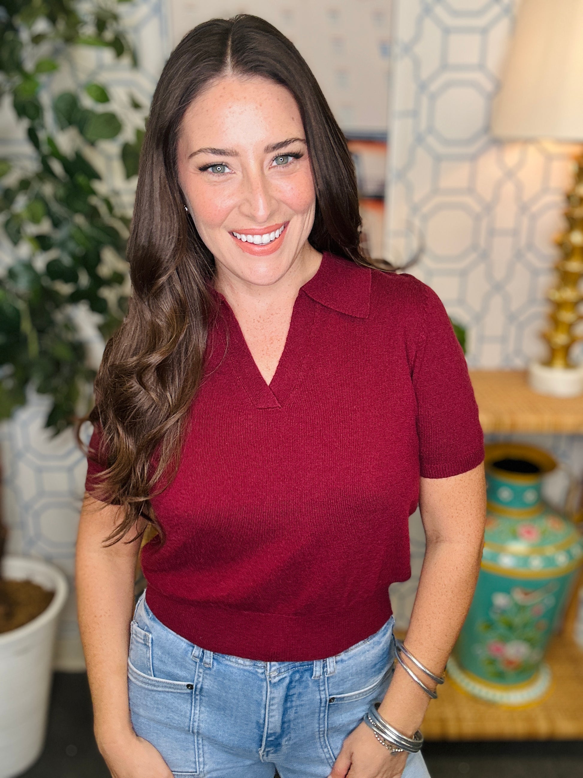 The LK Wine Sweater is your preppy essential with a modern twist. This short sleeve sweater in a rich wine hue brings timeless sophistication to your everyday rotation. Whether you're pairing it with tailored trousers, a crisp skirt, or your favorite jeans, this piece elevates any look with understated elegance. The classic silhouette and polished color make it endlessly versatile—perfect for transitional weather or layering year-round. Refined, comfortable, and totally wearable, this sweater is about to become your go-to for put-together style.