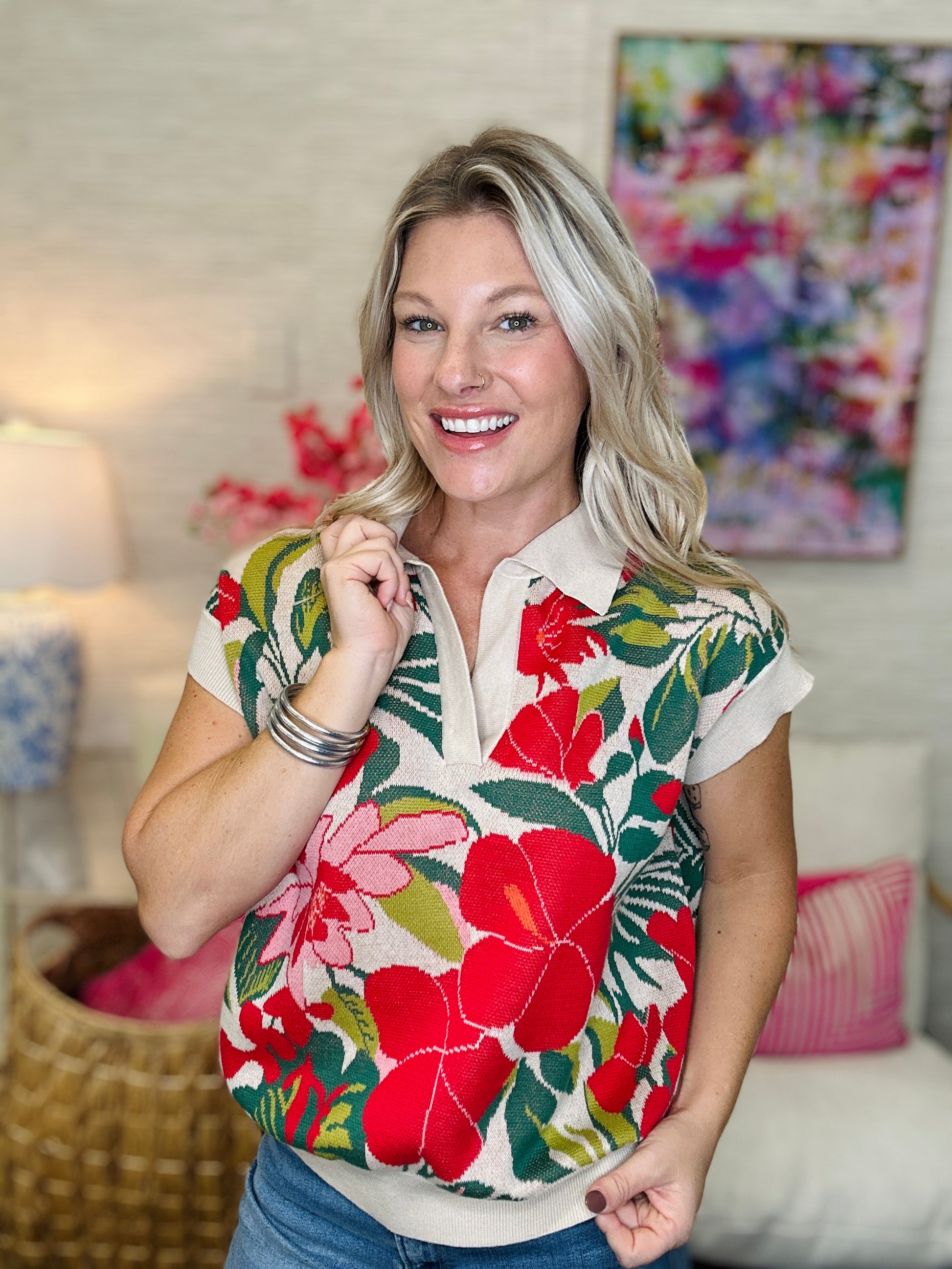 Add a fresh twist to your wardrobe with The Lokie Sweater! Featuring a floral jacquard knit design, this playful piece shines with its chic collared split neck. Soft, textured, and effortlessly stylish, it’s perfect for layering or wearing solo to brighten up any day with a touch of fun flair.