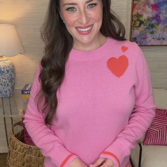 Wear your heart on your sleeve—literally—in this adorable pink sweater that's all about love and charm. A bold red heart sits front and center, while matching red trim along the hem ties the whole look together with playful sophistication. Cozy enough for everyday wear yet sweet enough to make a statement, this sweater is perfect for spreading warmth and good feelings wherever you go. Simple, stylish, and impossible to resist!