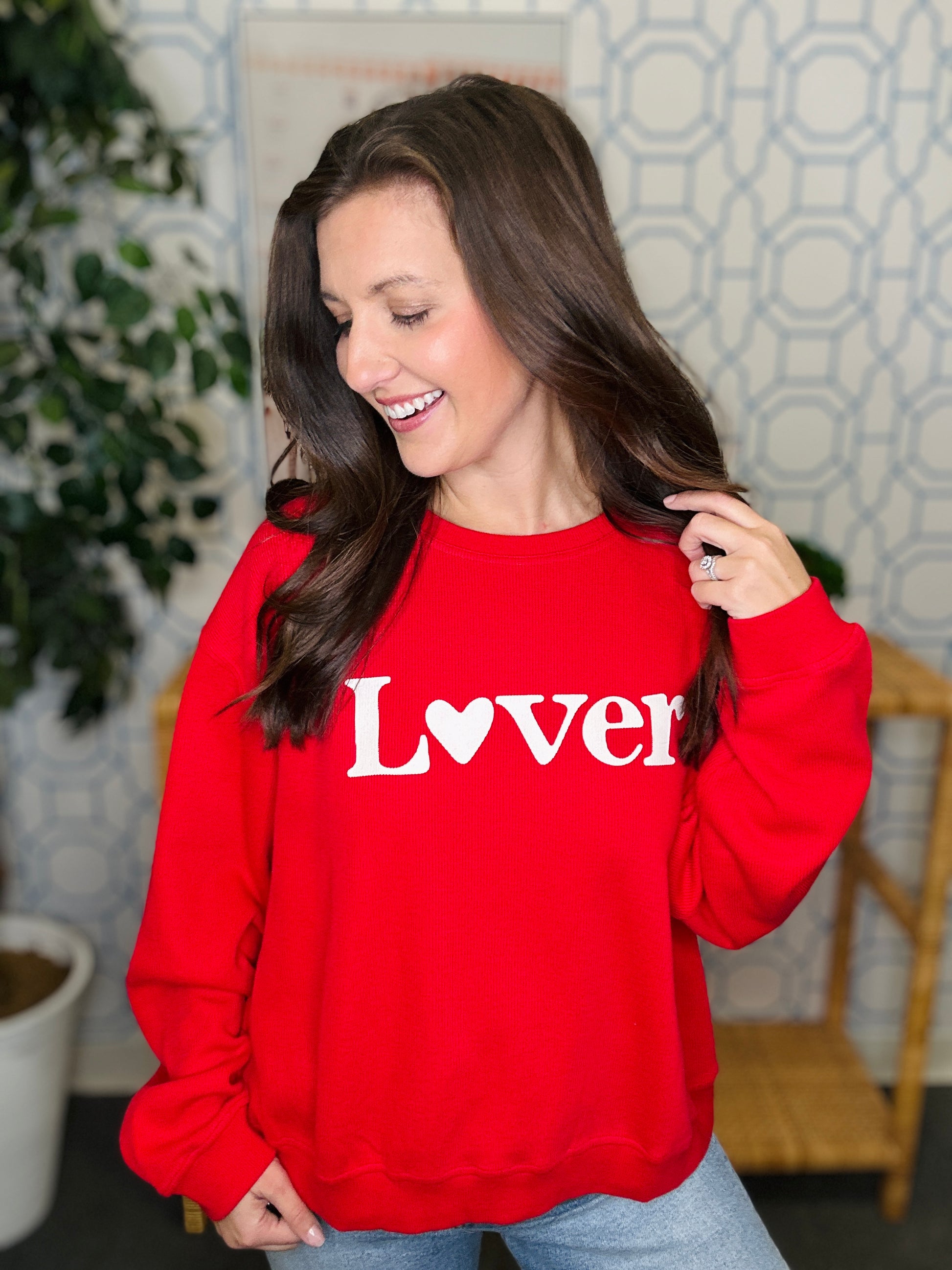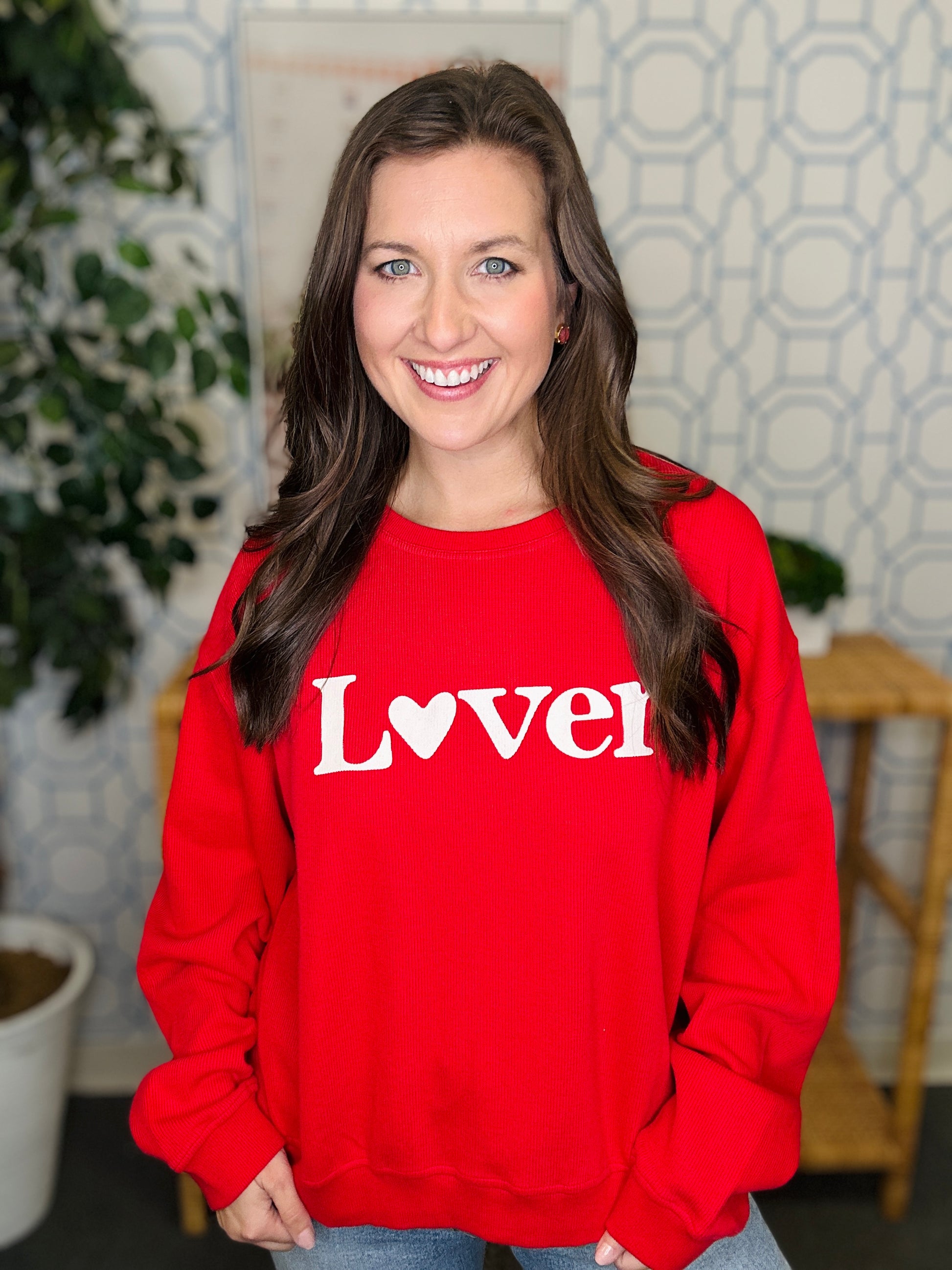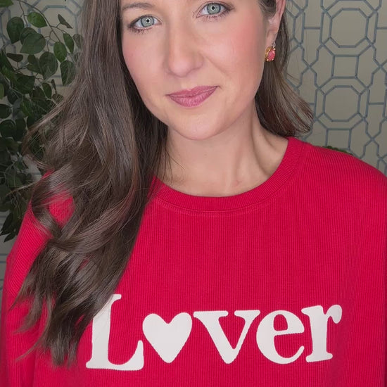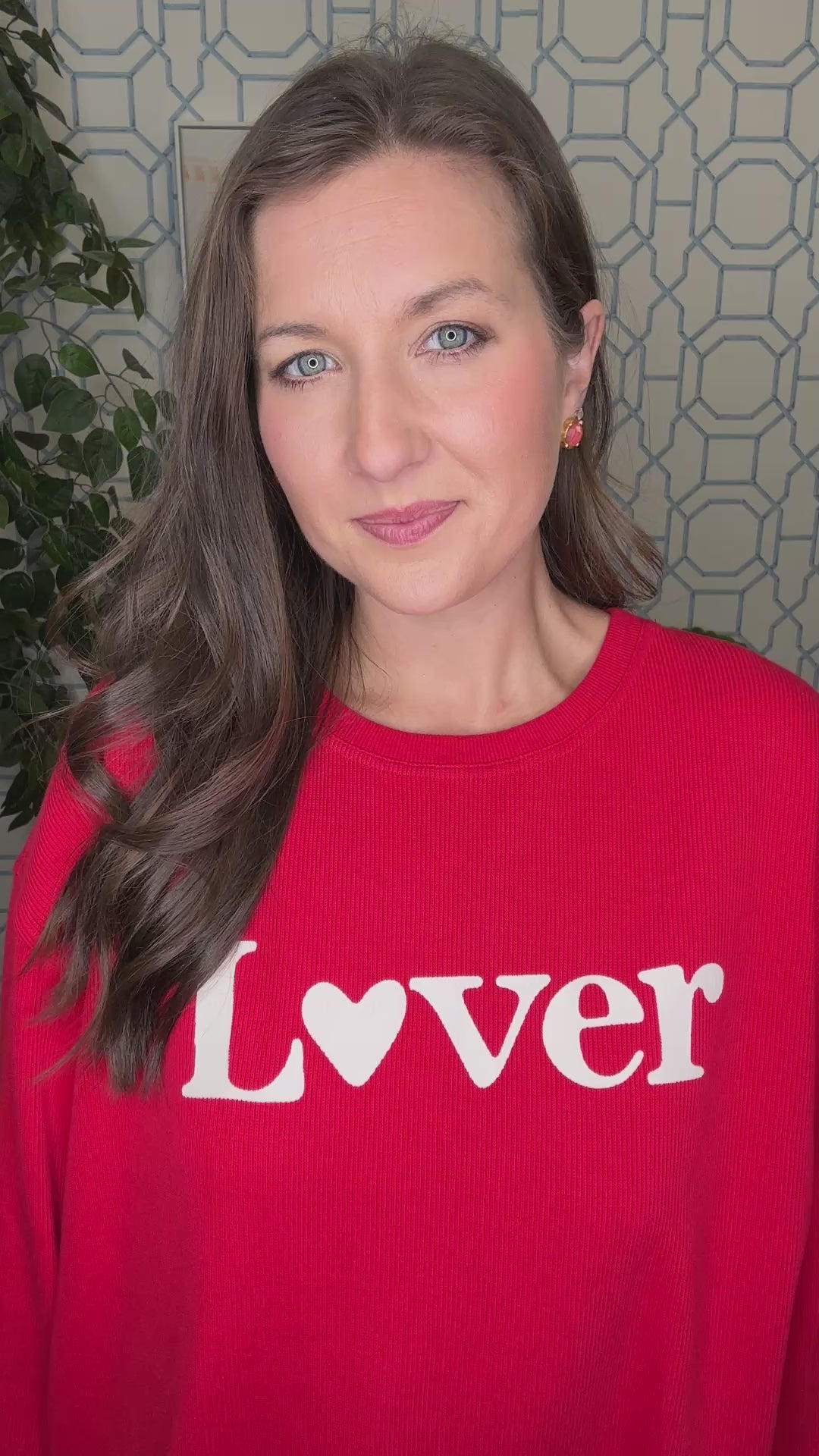 The Lover List Pullover is your new feel-good essential. This red graphic pullover features the word "lover" front and center—a bold declaration of your sweet, romantic side. Cozy and comfortable, it's perfect for casual days when you want to wear your heart on your sleeve (literally). Grab this playful piece and let everyone know exactly what you're all about.