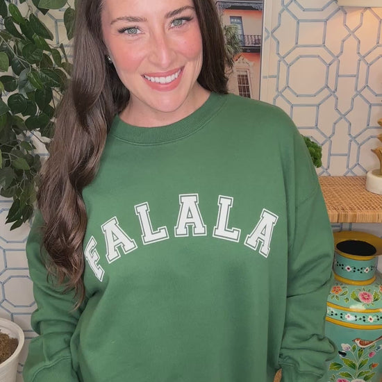 The Lush Falala Pullover brings holiday cheer in the most delightful way. This vibrant green sweatshirt features "falala" written out in crisp white—a playful nod to the season's most infectious melodies. Perfect for anyone who loves spreading joy and good vibes, it pairs effortlessly with your favorite bottoms for instant festive style.