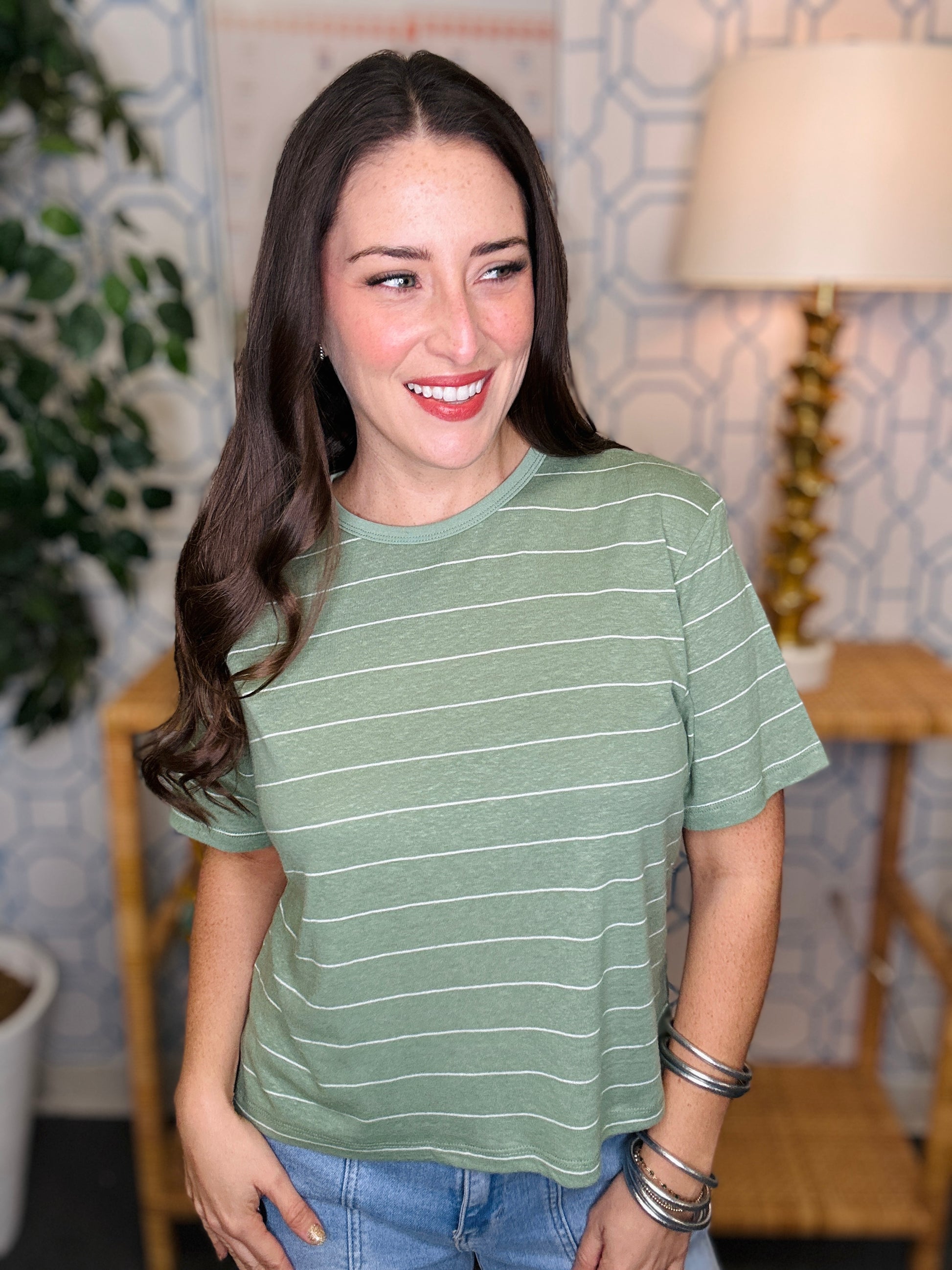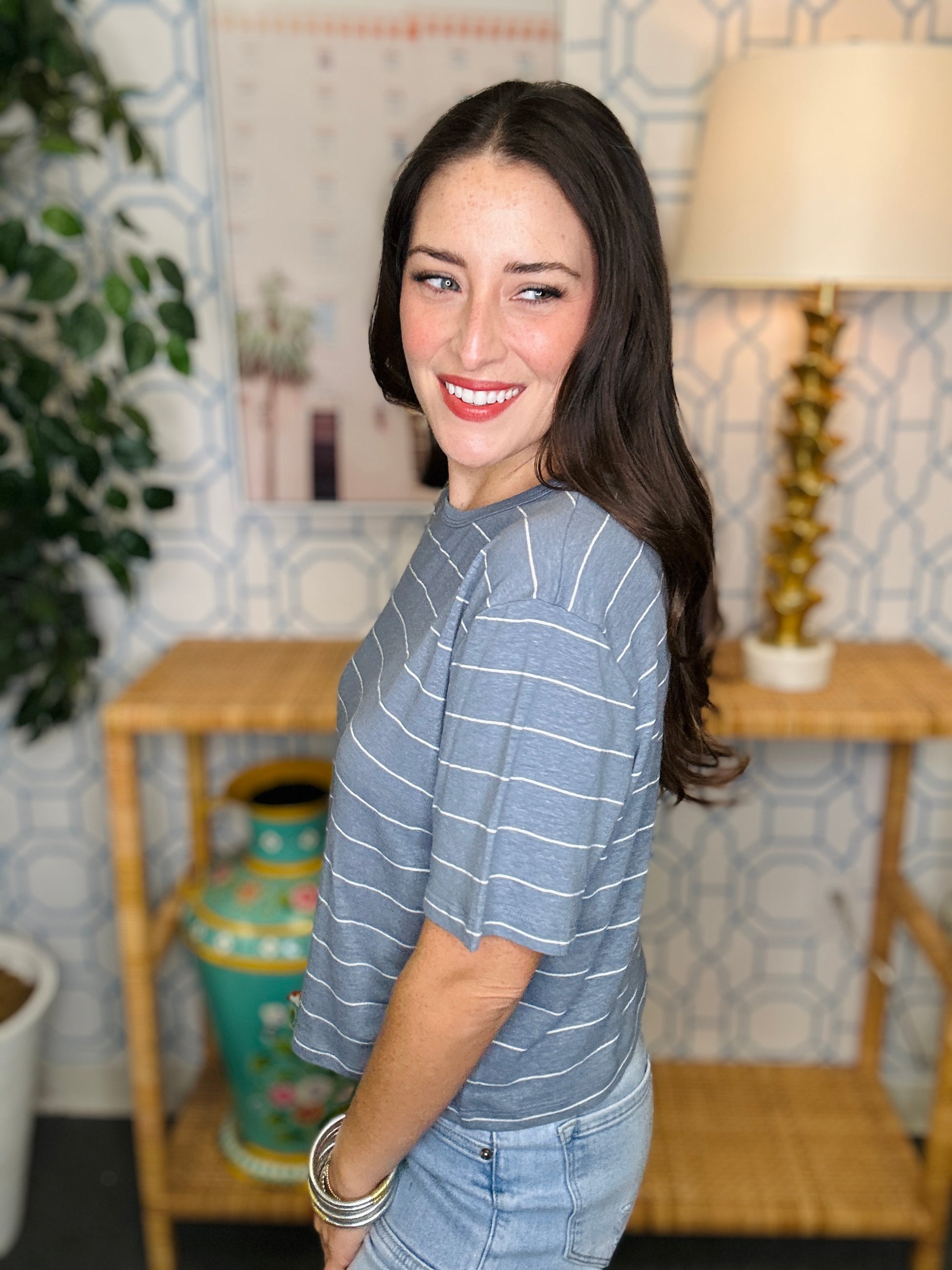 Say hello to your new go-to basic—a soft, adorable crop tee that's anything but boring. Available in three versatile colors, this piece features charming stripe detailing that adds just the right amount of visual interest without overthinking it. Ultra-comfortable and perfectly cropped, it pairs beautifully with high-waisted jeans, skirts, or layered under slip dresses for that effortless cool-girl aesthetic. Whether you're dressing it up or keeping it casual, this tee proves that sometimes the simplest pieces bring the most joy. Grab it in all three colors and rotate through your favorites all season long.