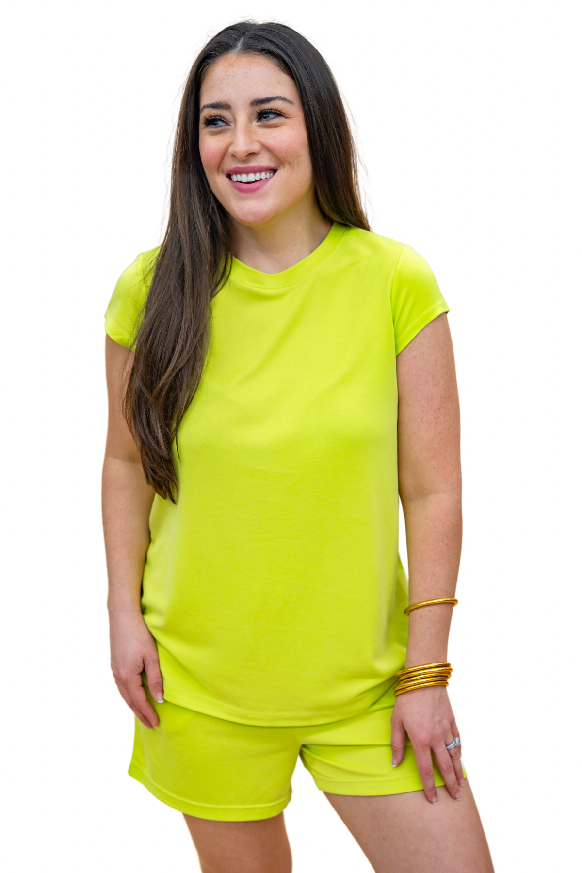 Our custom PDA line of Meredith is AMAZING. Modal fabric that feels like luxury should feel, at affordable prices. True to size, Ashley wears a Small in everything. Katie went up one for pants and the tanks for her chest!