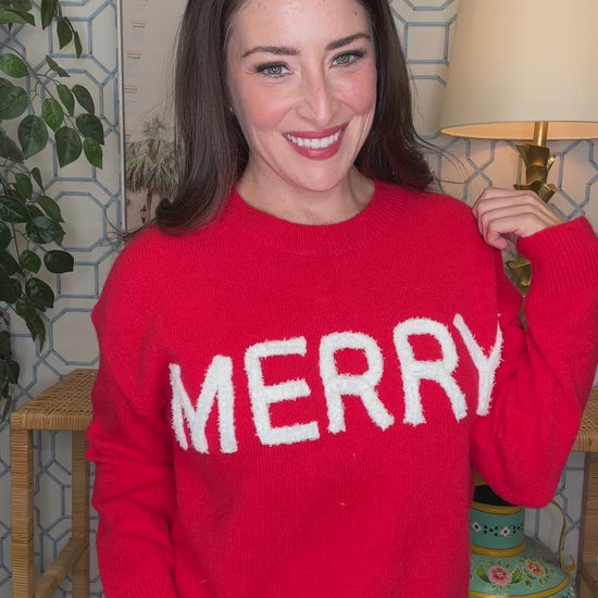 The Merry Patch Sweater spreads holiday cheer all season long. This long sleeve sweater features "MERRY" stitched on in a charming channel detail that adds texture and visual interest. Available in two festive colors, it's the perfect way to celebrate the season without going overboard. Cozy, comfortable, and packed with personality, this sweater works for holiday gatherings, casual hangouts, or just spreading good vibes wherever you go. Get merry with it.