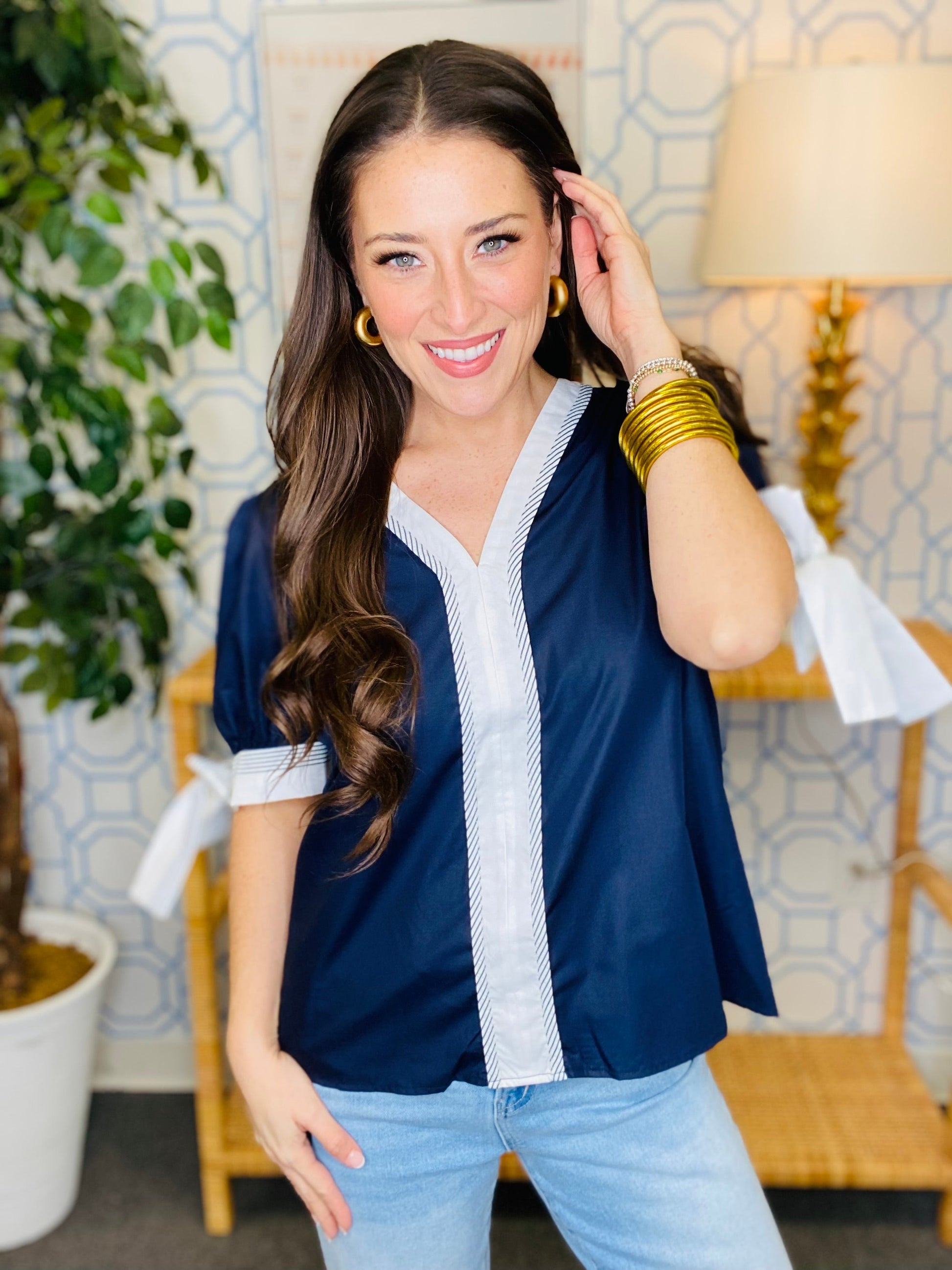 Halley (model pictured) is a size 4, small in tops, size 3/26 in bottoms, 5'2" and wears a small in this top.